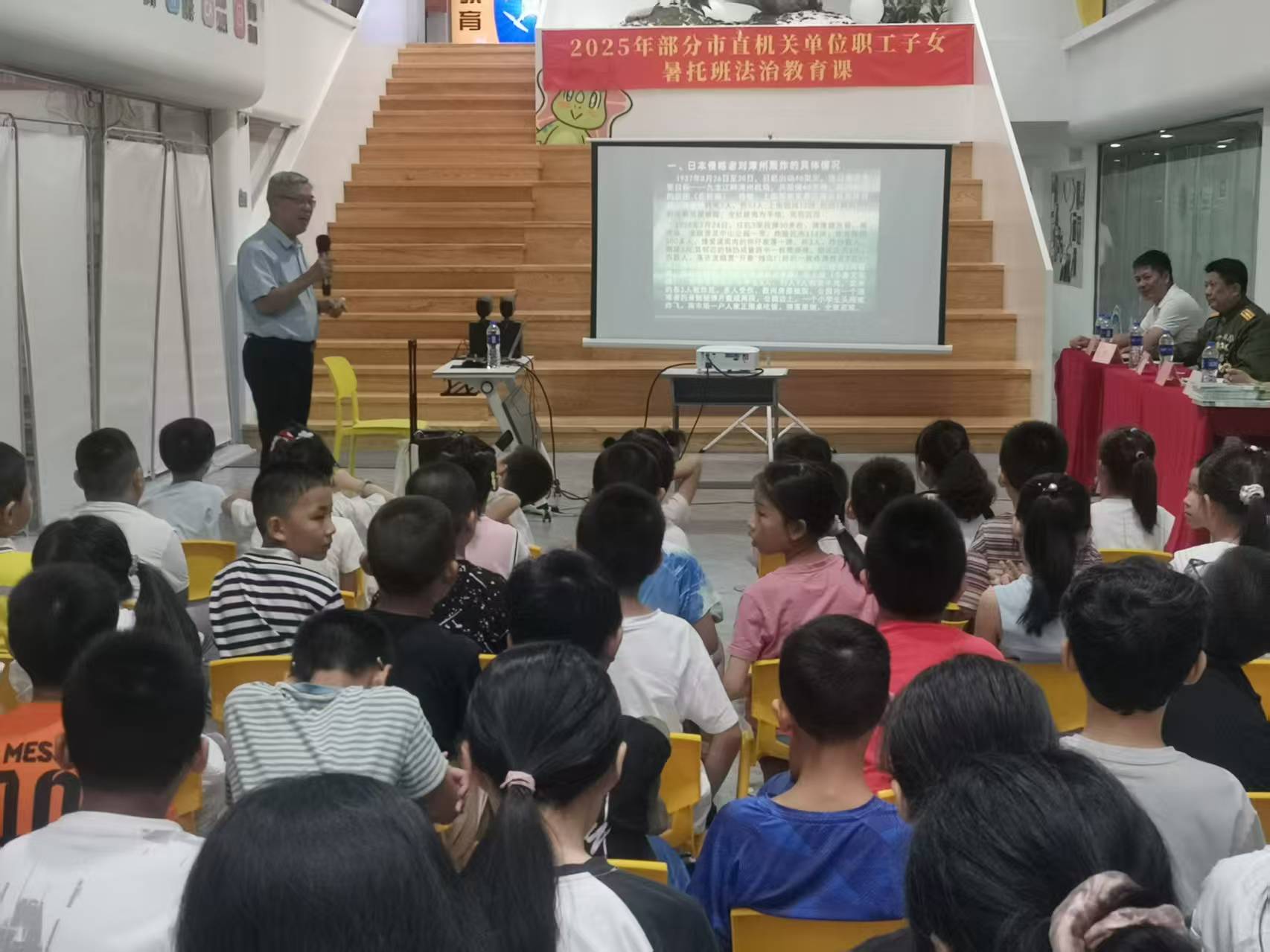 课堂上,老同志们各展所长,带来别开生面的课程。市关工委副主任陈青树以《法律护航健康成长——做知法守法小公民》为题,结合青少年易接触的案例,用通俗语言讲解法律知识,教孩子们明辨是非界限;副主任何池则以《抗战时期日寇对漳州人民犯下的滔天罪行暨漳州抗日英雄谱》为主线,通过本地抗战故事唤起孩子们的家国记忆,让孩子们心中的爱国之情油然而生,激荡起深沉而炽热的家国情怀;对越自卫反击战二级战斗英雄马国民的“保家卫国”故事;老检察官刘福成的“品学兼优”嘱托、市直政法系统关工委常务副主任沈迪辉的“平安成长”提醒。他们先后到市直机单位、市物业服务行业等7个职工子女暑托班,形成系列教育课堂。