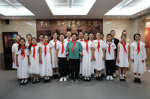 8月27日下午,顾秀莲来到建三江分公司,她不顾旅途劳累,首先走进七星农场场史纪念馆,早已在此等候的少先队员们涌上前来,向顾奶奶问好,并为顾秀莲和在场的“五老”代表带上红领巾。顾秀莲热情地把孩子们招呼身边,一起合影留念。展馆里一幅幅老照片、一件件实物展品,生动再现了北大荒从“北大荒”到“中华大粮仓”的沧桑巨变。顾秀莲认真聆听讲解,不时驻足询问三代北大荒人开发建设的细节,对“自力更生、艰苦创业、勇于开拓、甘于奉献”的北大荒精神有了更深刻的认识。
