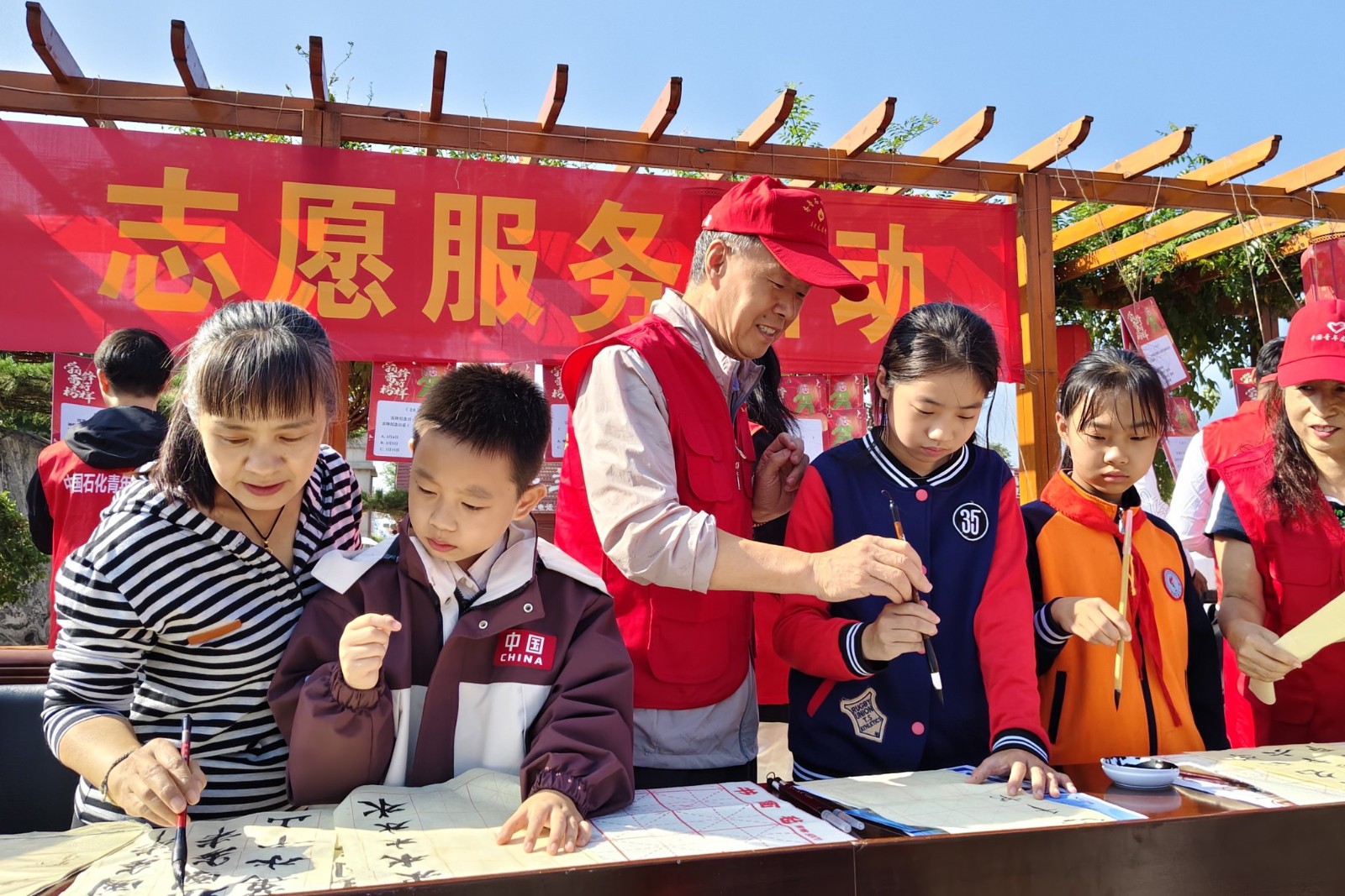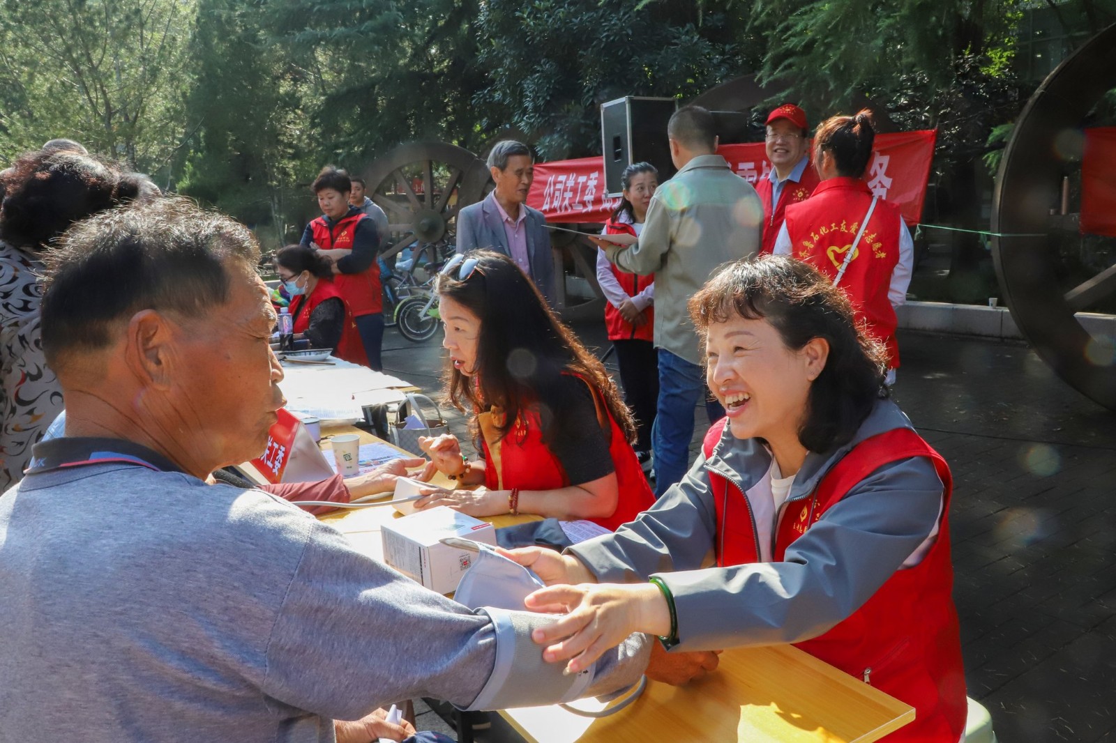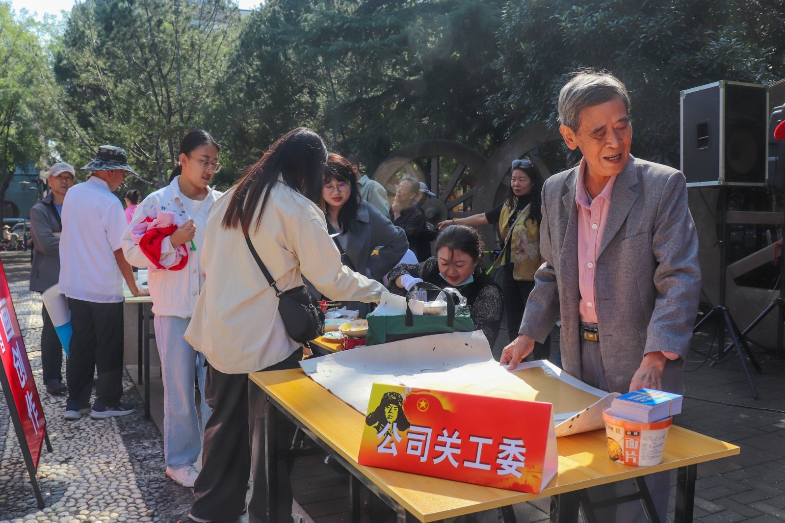 这次志愿服务活动,公司关工委组织“五老”骨干开展了理发、测血压、磨刀剪、清洁手机等项目,为附近居民提供服务。此外,还特意组织了书画展演,老年志愿者现场进行书法、绘画创作,义务向大家赠送作品,深受广大市民的欢迎。