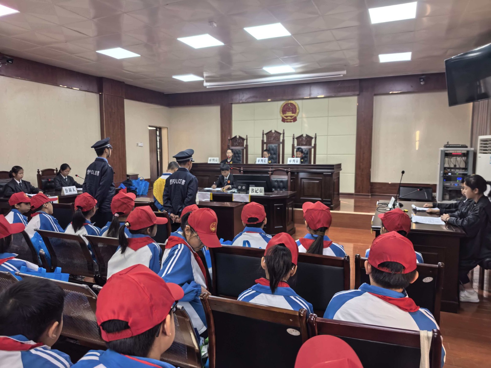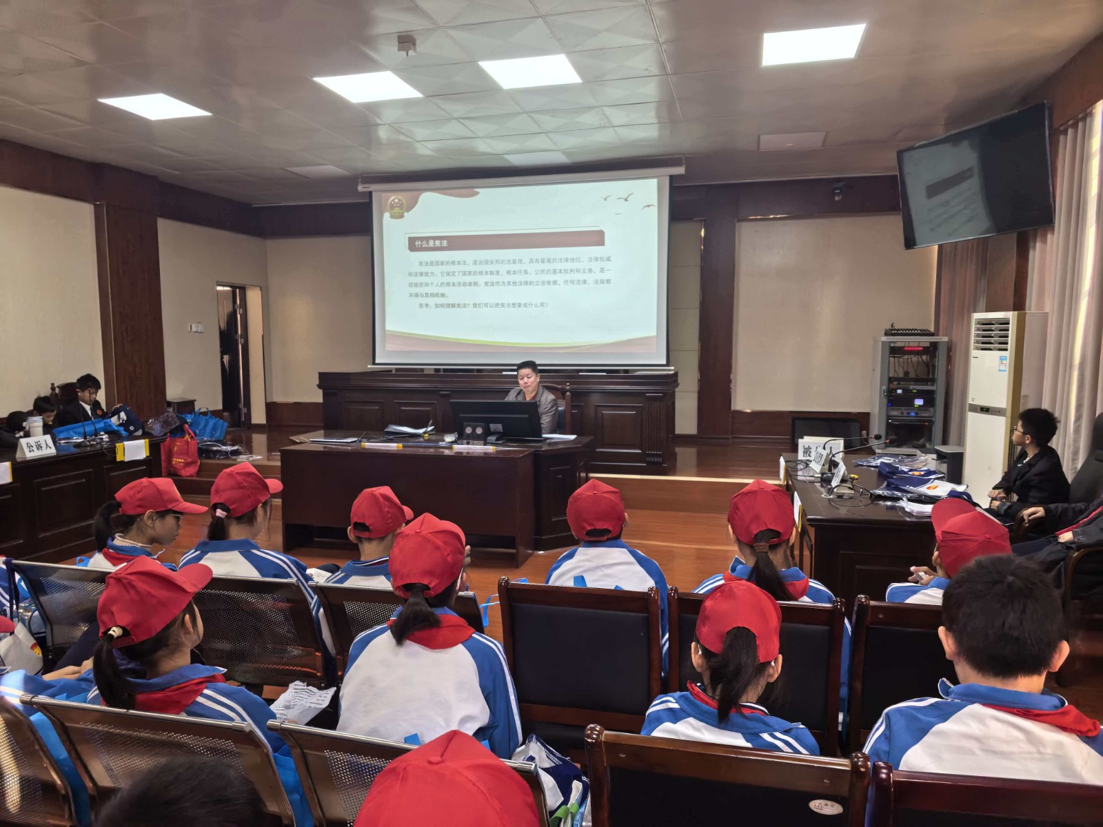 12月4日上午,市关工委联合市中级人民法院和市教育局,组织防城港市第二中学近60名师生代表走进防城区人民法庭开展“宪法宣传周——送给孩子一束法治的光”法治研学进人民法庭活动。活动中,师生们依次参观审判法庭、圆桌调解室、法庭法治教育展厅及少年法庭等,近距离观看了警械装备展示。法治课堂环节,市关工委“五老”宣讲员、退休检察长梁恪嘉以生动易懂的语言为学生们普及宪法知识,引导大家正确认识宪法、深入了解宪法的重要意义。在宪法知识互动问答环节,学生们踊跃抢答,课堂学习氛围热烈浓厚。模拟法庭是此次活动的亮点,学生们分别扮演“法官”“检察官”“当事人”“辩护人”等角色,围绕一起校园欺凌案件,完整模拟庭审调查、举证质证、法庭辩论、宣告判决等环节,沉浸式体验司法审判的严肃性与权威性。活动最后,全体师生面向宪法庄严宣誓,以铿锵有力的誓言表达尊崇宪法、维护宪法权威的决心,为此次法治研学活动画上圆满句号。