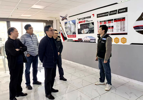 2026年1月6日上午,中国铁路南宁局集团有限公司关工委常务副主任张柳胜、副主任周庆锋一行四人,赴南宁国际铁路港考察调研。考察组先后参观西部陆海新通道南宁国际铁路港展厅,实地查看物流港沙盘模型、铁路货运枢纽仿真演示区及顺通分拣中心,深入了解西部陆海新通道建设运营、物流港规划布局等情况,并围绕将铁路港打造为青少年研学基地的可行性方案展开研讨,为青少年搭建了解铁路物流与国家战略的实践平台,为推进路地关工委工作融合联动做好前期相关工作。