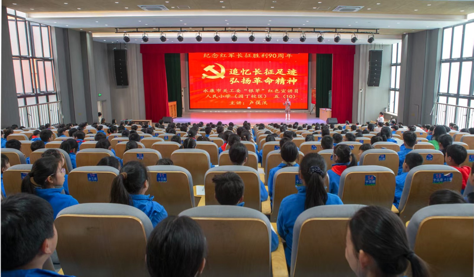 弘扬长征精神,争做时代新人。3月16日上午,永康市人民小学报告厅内暖意融融、精神昂扬。为隆重纪念红军长征胜利90周年,学校在此举行“银芽”红色宣讲“开学第一课”活动。市关工委“银芽”红色宣讲员、人民小学五(10)班学生卢俣汛担任主讲人,全校360名师生齐聚现场,共同开启了一场跨越时空的红色对话。