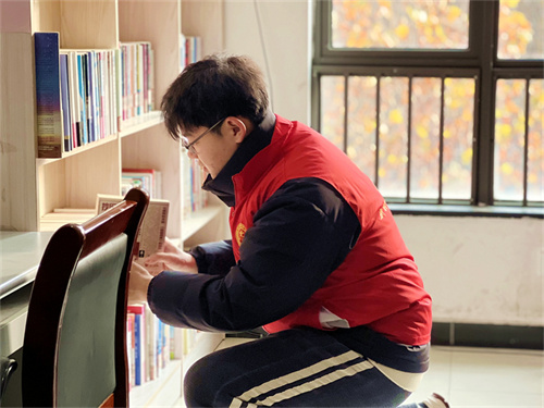 活动现场,按照小组分配,大家齐心协力、各司其职,在一排排书架前来回穿梭。小邹、小刘负责环境的维护与清洁,手提水桶、抹布和扫把,对杂物、灰尘进行清理;小陈、小苏、负责图书整理与分类,按照书籍类型整理,让原本杂乱无章的书籍变得规范有序;小章则是对图书内容、图书题词等进行全面清查,确保书屋内的图书内容积极健康。经过4个小时的努力,书屋内千余册图书以及杂志、报纸全部整理完毕,摆放的井然有序。在一旁下棋的胡叔叔看着焕然一新的书屋说:“现在电子设备太普遍了,我们的时间总是被电子屏幕占据,现在有了这么整洁的书屋,我们应该把纸质图书再好好拿起起来。”