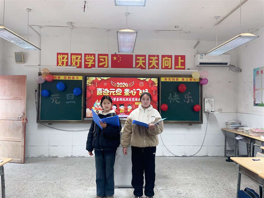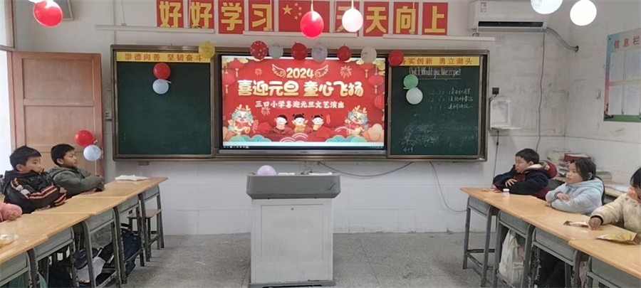 各班级对教室进行了装饰,展示了节日的喜庆氛围。各班级的节目内容丰富多彩,精彩纷呈。孩子们欢乐地参与了整个庆祝活动。学校关工委领导查看了各班活动的开展情况,并与师生共同庆祝新年的到来。