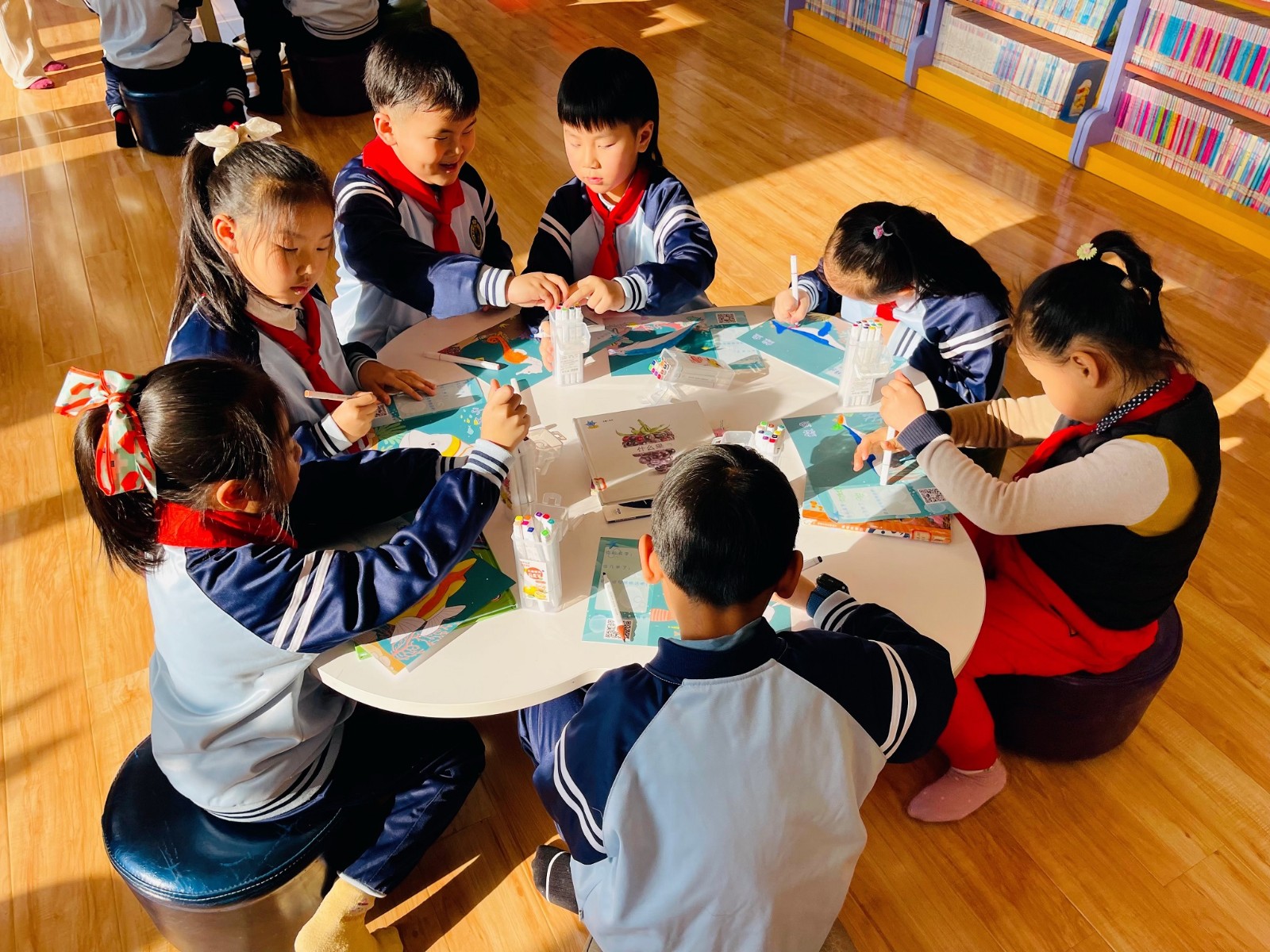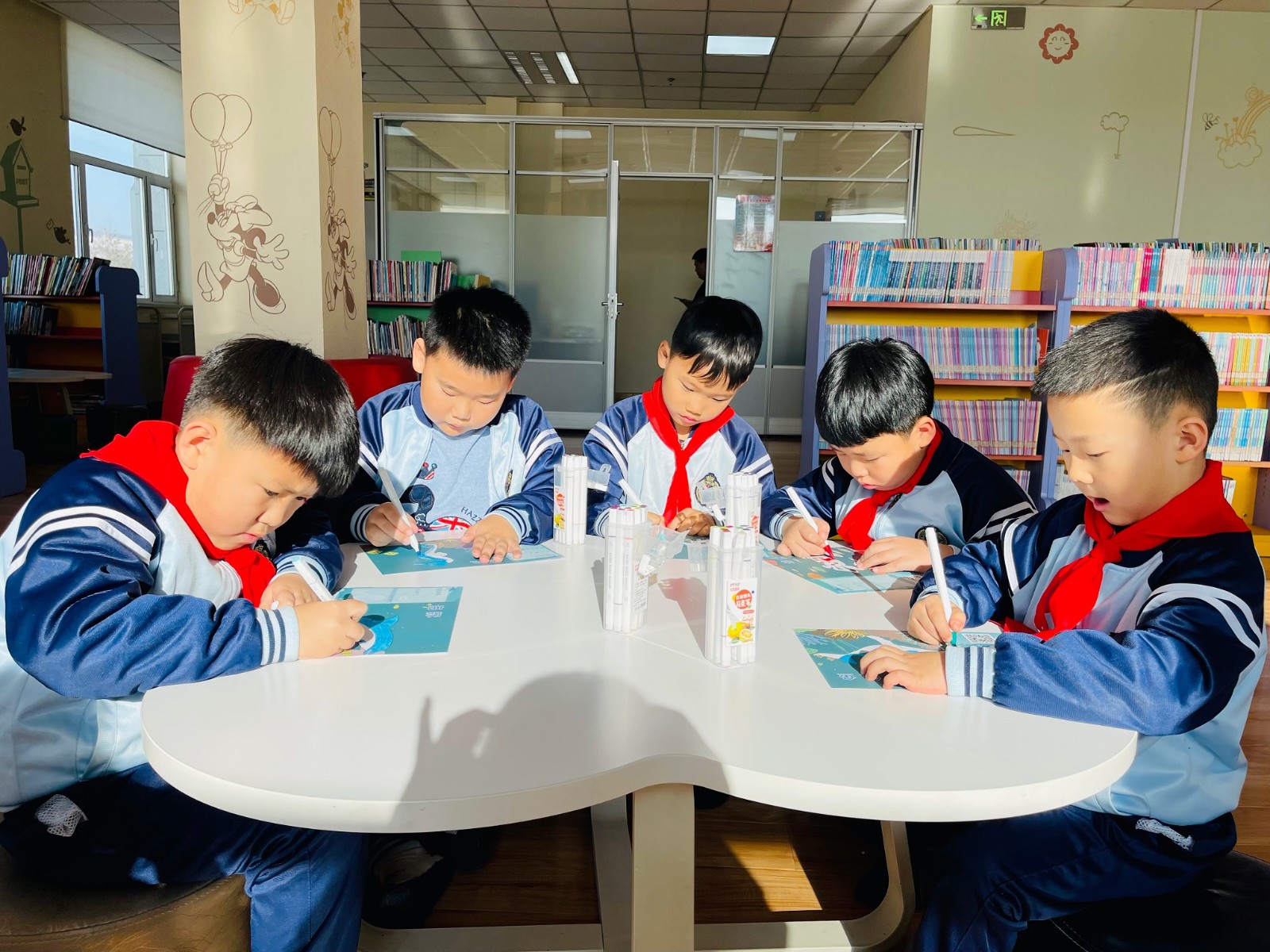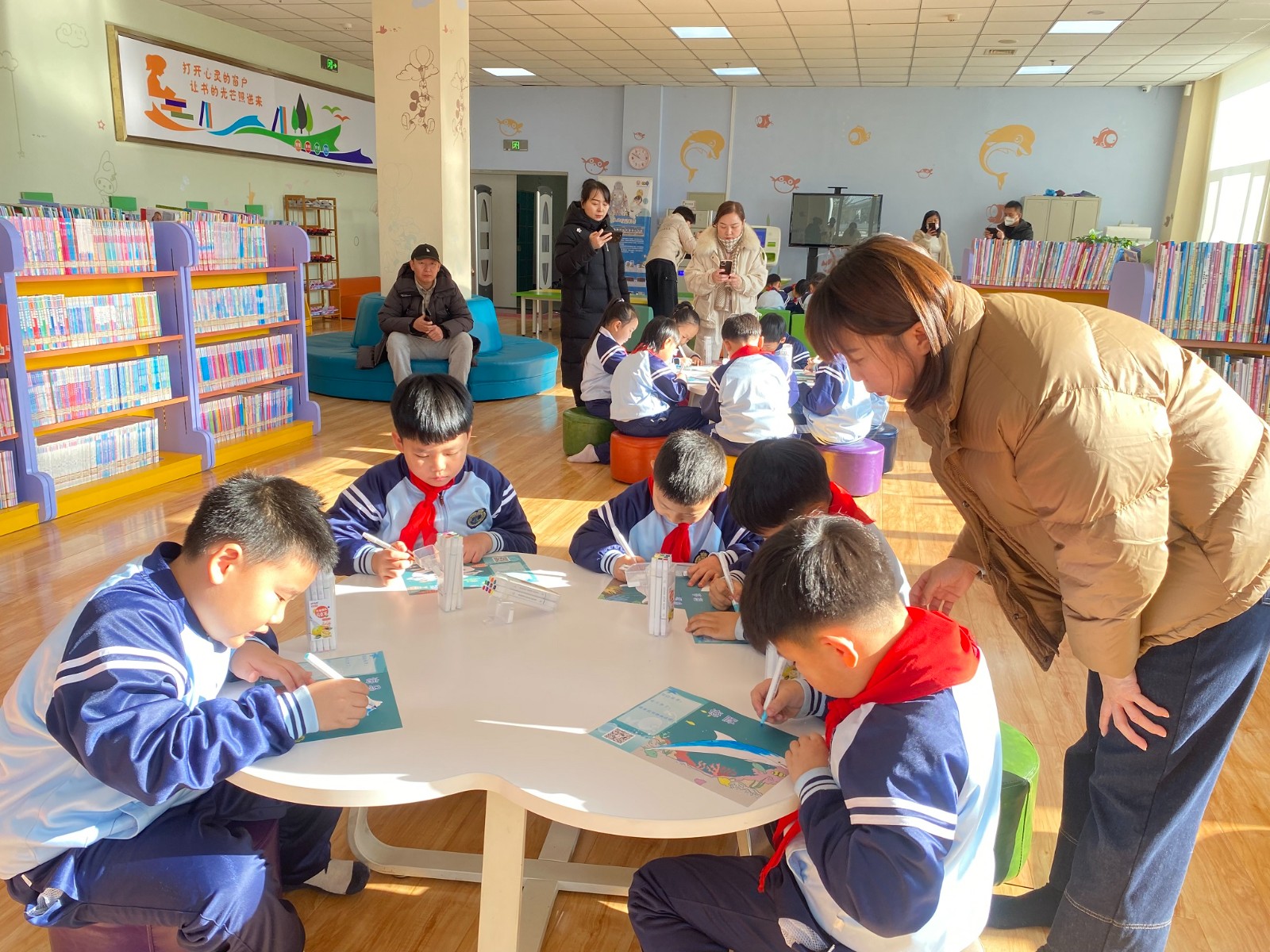 学生们首先沉浸在书的海洋中,坐在桌子前津津有味地阅读。完成阅读打卡后,每个学生都获得了一张动物图片,用他们的想象力为这些动物涂上美丽的颜色,创造出了生动活泼的艺术品。而更令人兴奋的体验还在后面,学生们在图书馆的3D体验馆中亲眼见证了自己创作的画作变成了生动的动画。这种创新的互动方式无疑让学生们对阅读和艺术有了更深的热爱和理解。