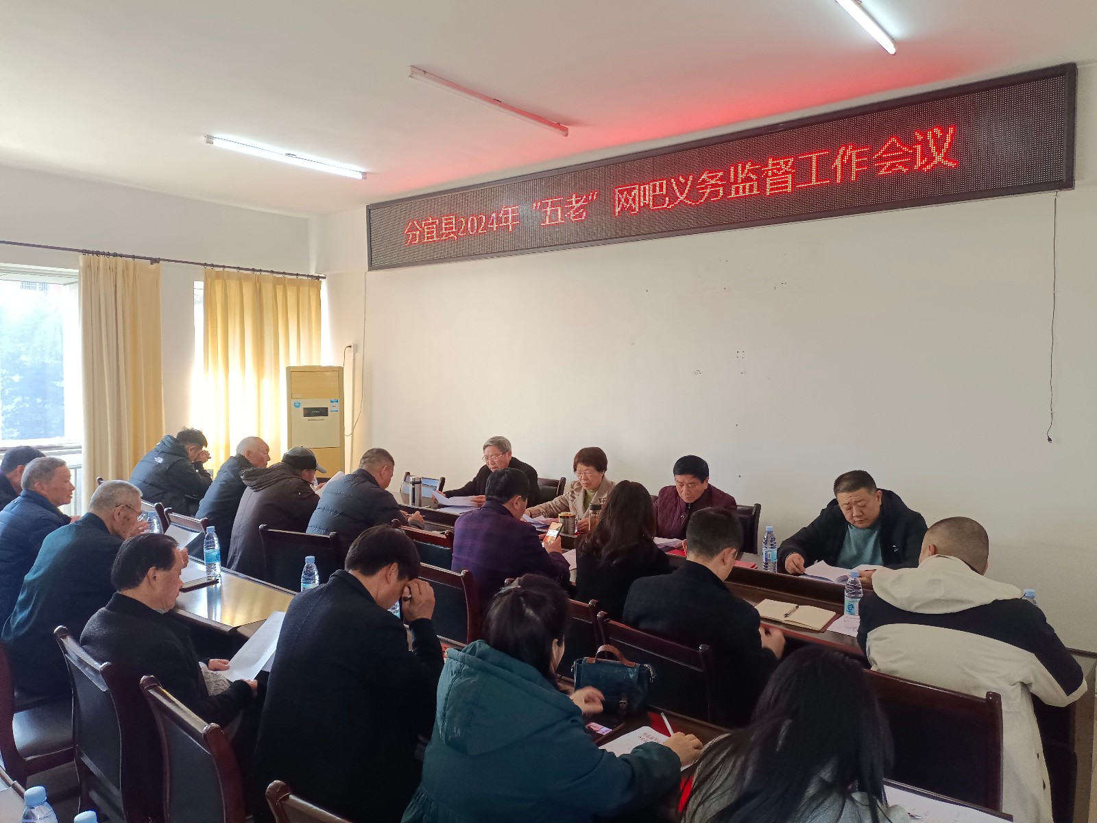 2024年1月12日,江西省新余市分宜县关工委召开2024年全县“五老”网吧义务监督工作会议,县关工委驻会人员、县文广新旅局分管领导、县城“五老”网吧义务监督员和各乡(镇、街道)关工委专职副主任共计30余人参加了会议。