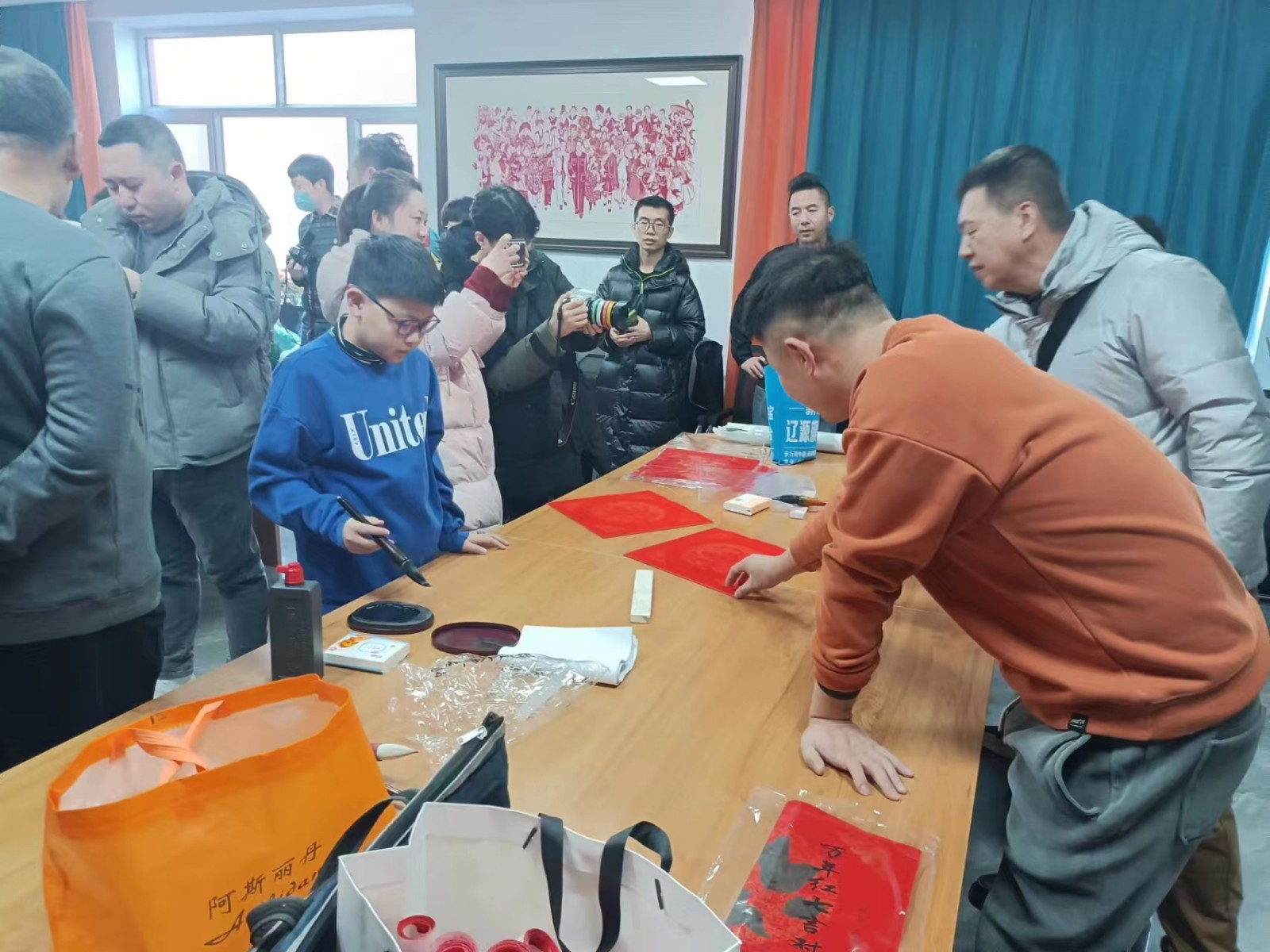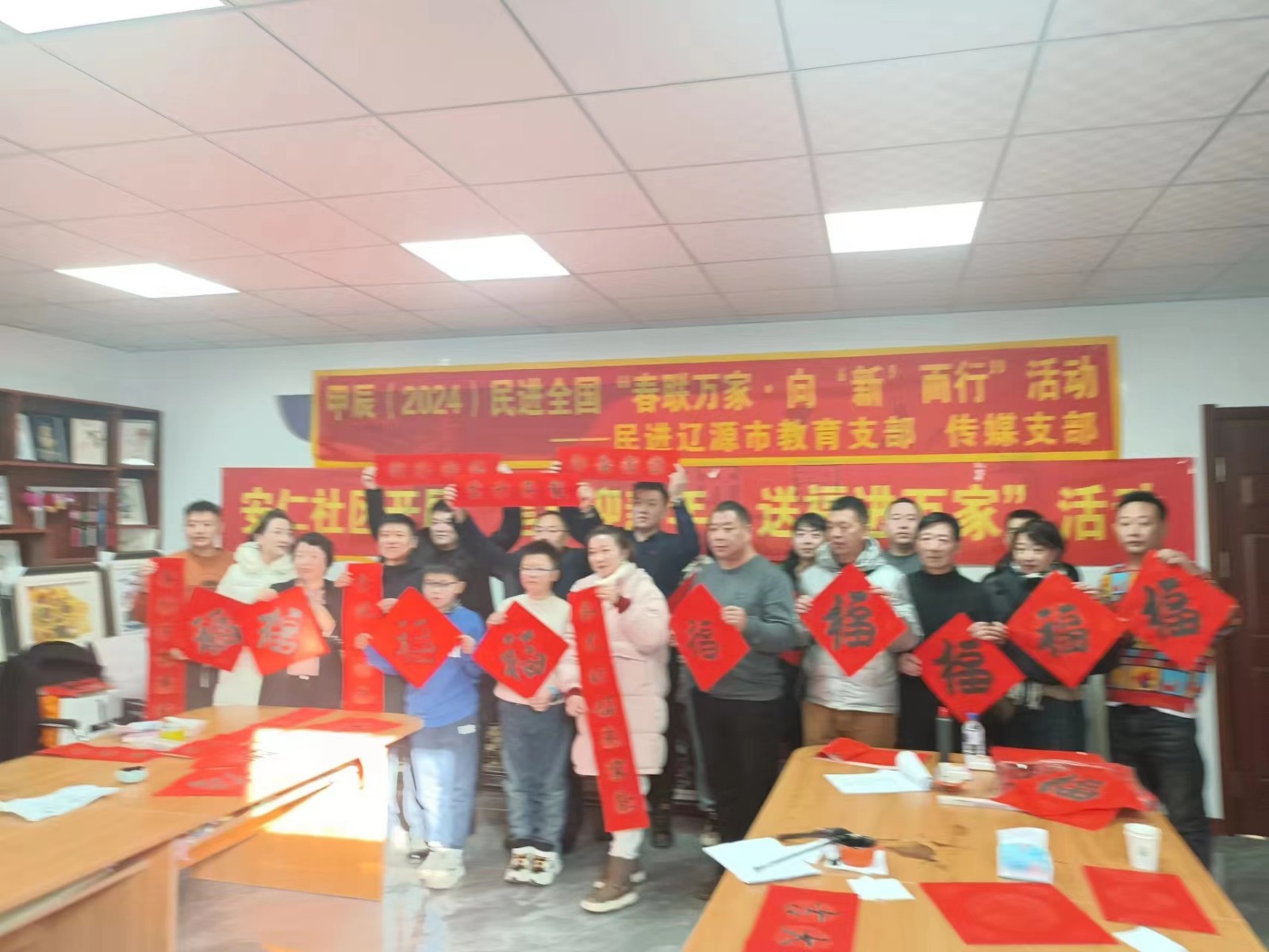 活动现场翰墨飘香,年味十足。来自民进辽源市委会会员与社区青少年书法爱好者二十多人共同挥毫泼墨,将真诚的祝福付诸笔端,一幅幅喜庆吉祥、祝福满满的春联写出了对新的一年里美好生活的憧憬和期待。同时,在安仁社区关工委的带领下,民进辽源市委会会员与社区青少年代表将所有作品一道赠送给社区居民,并送去了一幅幅春联和新春的美好祝福。