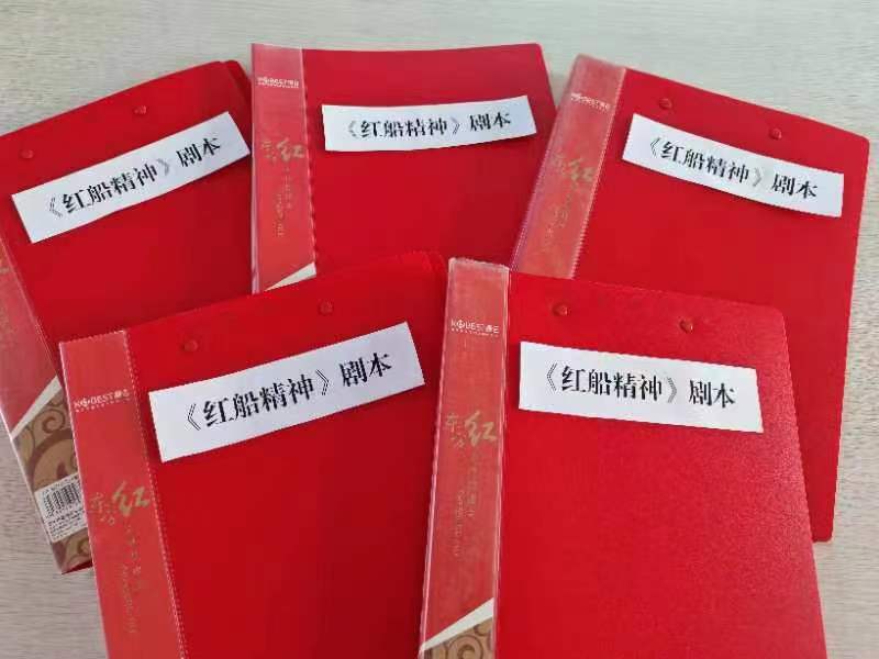 剧本分为四个场景。大家在确定了自己各自的角色后,迫不及待地一页一页地翻看着剧本,研究挖掘角色内心,寻找共鸣,共同感受时代洪流中先辈们命运的跌宕起伏,沉浸式领悟历史背后的革命热情。