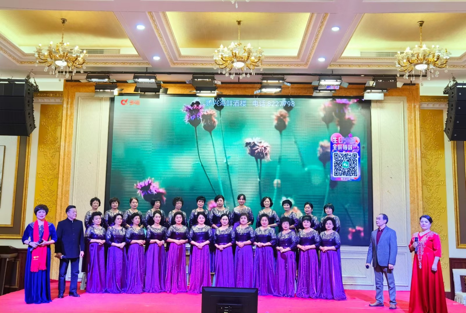 庆典活动上,活动中心的爱心合唱队、旗袍队、潮剧队、舞蹈队等嘉宾分别登台表演男女声独唱、二重唱、大合唱、旗袍走秀、舞蹈、魔术等18个精彩节目,博得阵阵掌声,活动气氛浓烈,表现出“五老”浪漫夕阳,风采依旧的活力。庆典活动在《我和我的祖国》大合唱中降下帷幕。