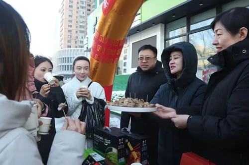 1月13日,在北大荒优选超市,顾客络绎不绝,嫩北农场有限公司营销人员化身“北大荒”产品的讲解员,热情邀请来自五湖四海的“小金豆儿”小朋友一起品尝热乎乎的“铁锅炖嫩北狮白鹅”,不仅让大家了解了豆都九三的特色产品,更品尝到了冬日里北大荒的“热情”。