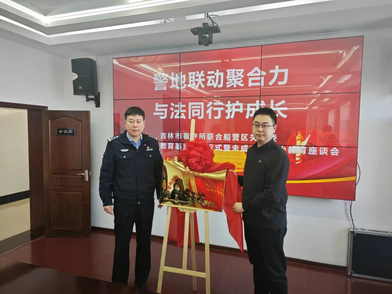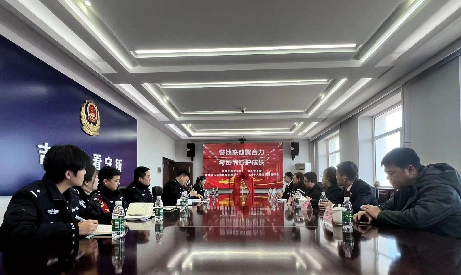 揭牌仪式后,船营区法治教育成员单位与吉林市看守所相关工作人员召开了座谈会,与会人员围绕未成年社区矫正对象监管和预防再次犯罪问题,进行了积极的交流与研讨。