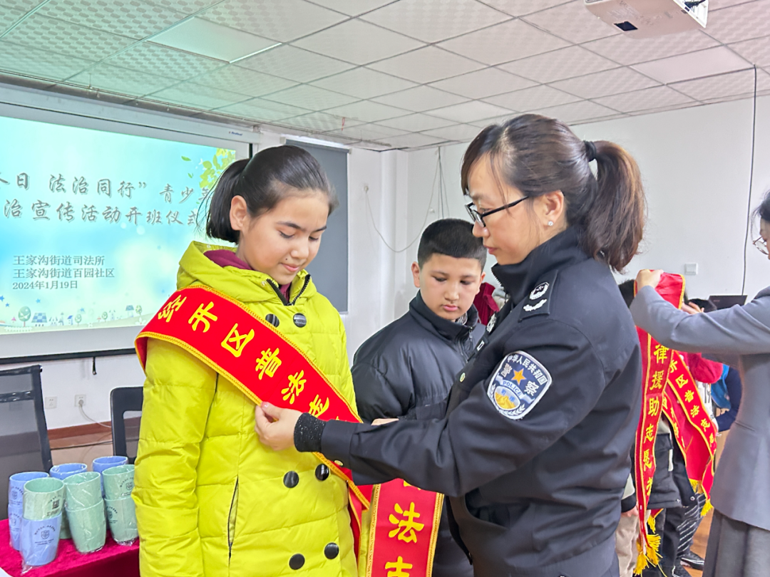 近日,乌鲁木齐经济技术开发区(头屯河区)王家沟街道百园社区联合王家沟司法所举办“缤纷冬日·法治同行”青少年寒假法治宣传活动开班仪式。