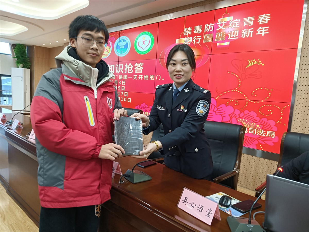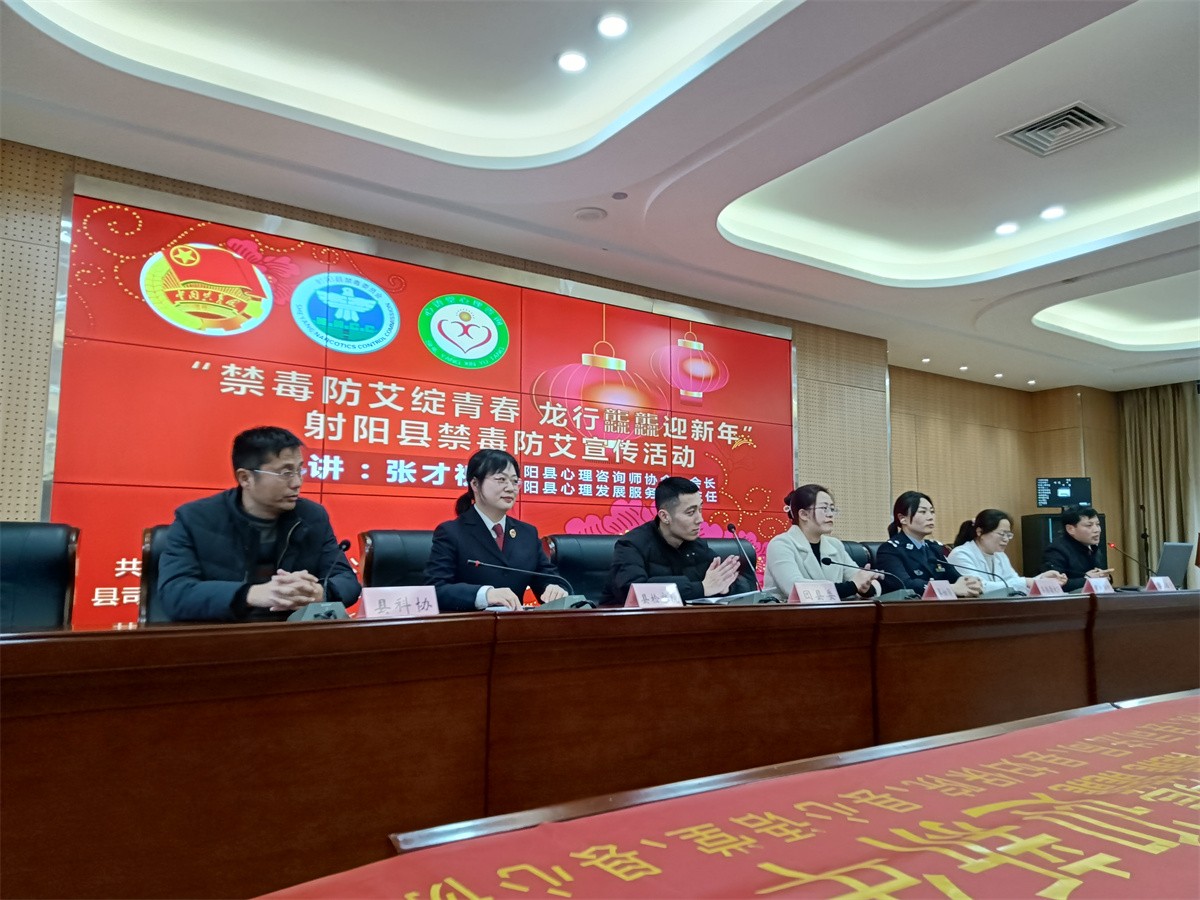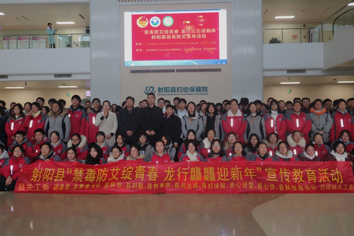 1月30日,江苏省盐城市射阳县关工委、射阳县合德镇关工委,联合共青团射阳县委员会、射阳县公安局禁毒大队、射阳县妇女联合会、射阳县科学技术协会、射阳县检察院、射阳县司法局、射阳县心语堂青少年心理发展服务中心、射阳县心理咨询师协会、射阳县科学技术志愿服务队等单位,在射阳县妇幼保健院开展“禁毒防艾绽青春 龙行龘龘迎新年”禁毒防艾科普宣传教育活动,向220多名放寒假在家的高中生宣传禁毒防艾知识,引导青少年青少年更深入地了解艾滋病的传播途径和如何预防艾滋病,以及识毒、防毒、拒毒的重要性。