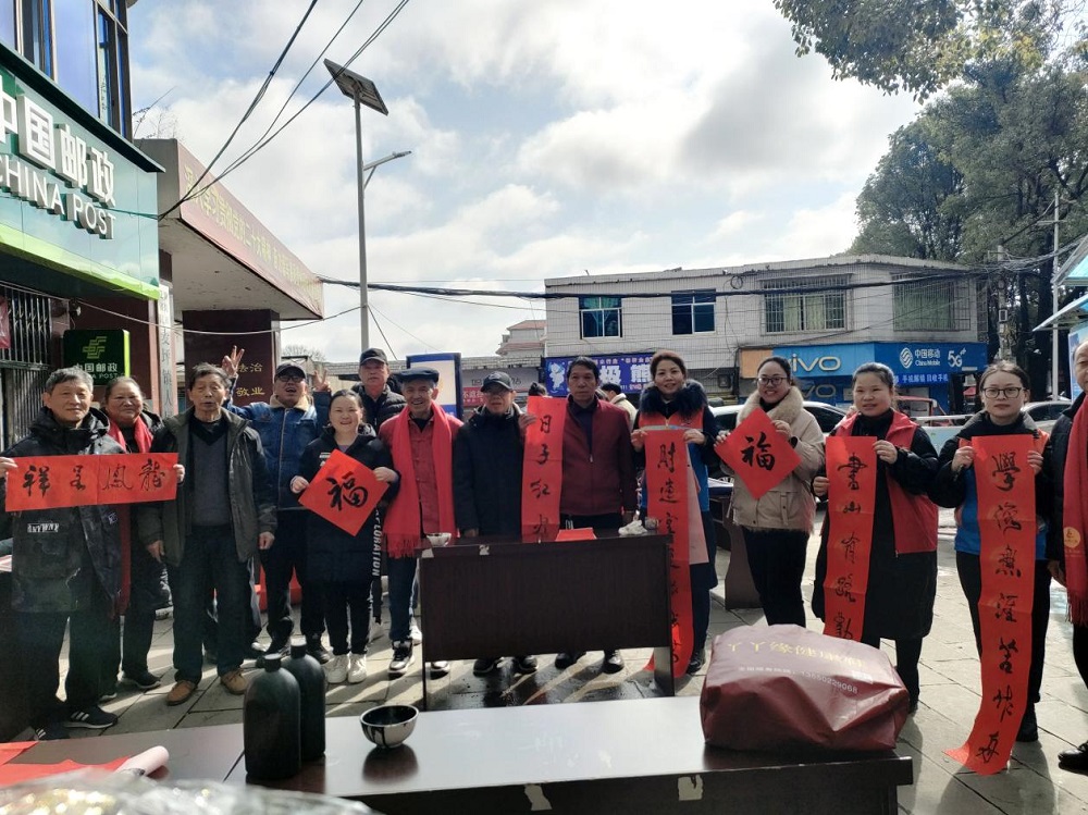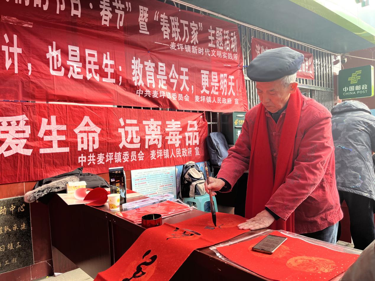为传承中华民族传统文化,营造喜庆、祥和的节日氛围,2月4日,依托新时代文明实践所为载体,举办了麦坪镇2024年“我们的节日·春节”暨“春联万家”活动。花溪区关工委顾问饶昌东带领“五老”书法家参加此次活动,活动以迎新年送春联为主题,充分展现了文明和谐的节日文化氛围和全镇干部群众积极向上的精神面貌。