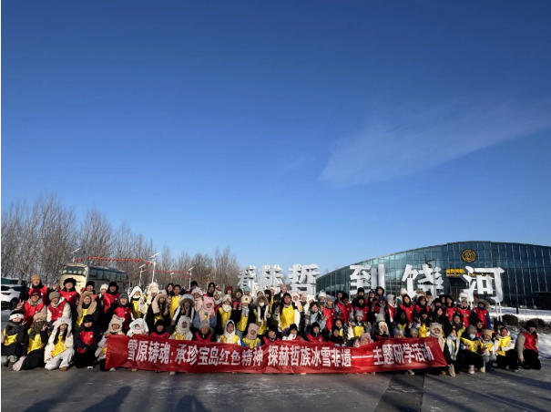 冰裹乌苏里,雪覆北大荒。在寒假来临之际,位于祖国东北边陲的八五九农场中心学校关工小组联合八五九学校,组织110余名师生,奔赴四排乡珍宝岛爱国主义教育基地与赫哲族文化聚居地,开展“承珍宝岛红色精神 探赫哲族冰雪非遗”主题研学活动,让北大荒的红色血脉与民族非遗的鲜活智慧,在行走的课堂中浸润每一颗童心。