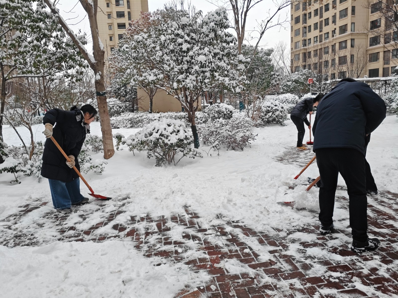 1月20日清晨,一夜降雪为锦月社区披上了银装,皑皑白雪虽添了冬日景致,却给居民出行带来了诸多不便,小区道路、广场等处的积雪经行人踩踏后逐渐结冰,暗藏安全隐患。为保障辖区居民尤其是老年人、儿童的出行安全,锦月社区关工委迅速行动,一场铲雪除冰服务活动紧急开展。