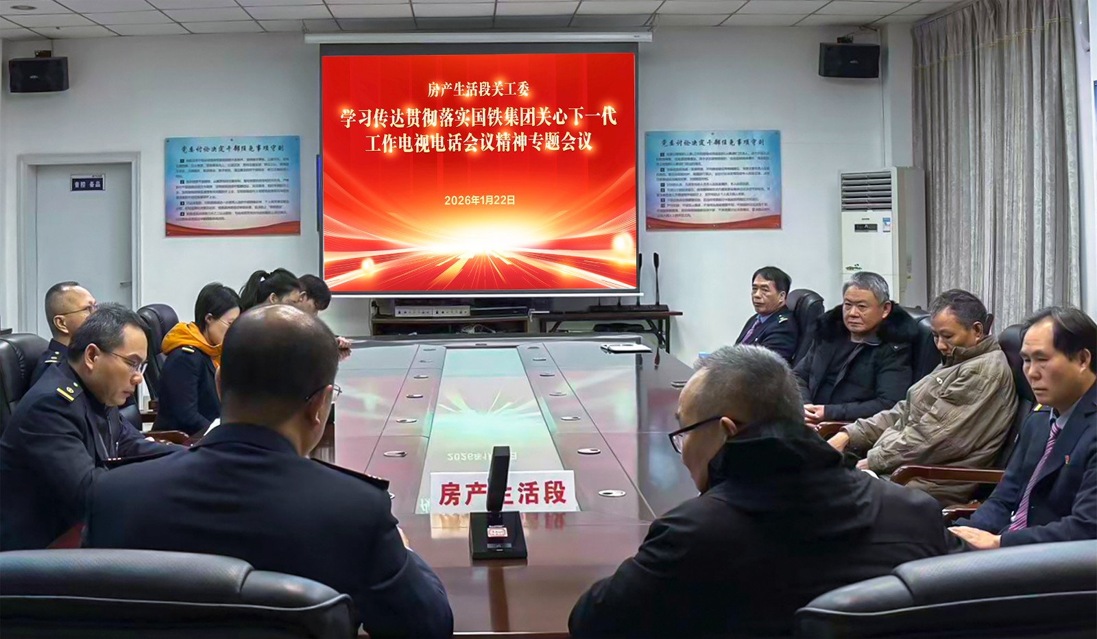 2026年1月22日下午中国铁路南宁局集团公司房产生活段关工委迅速组织召开专题会议,传达学习贯彻落实“国铁集团2026年关心下一代工作电视电话会议精神”。
