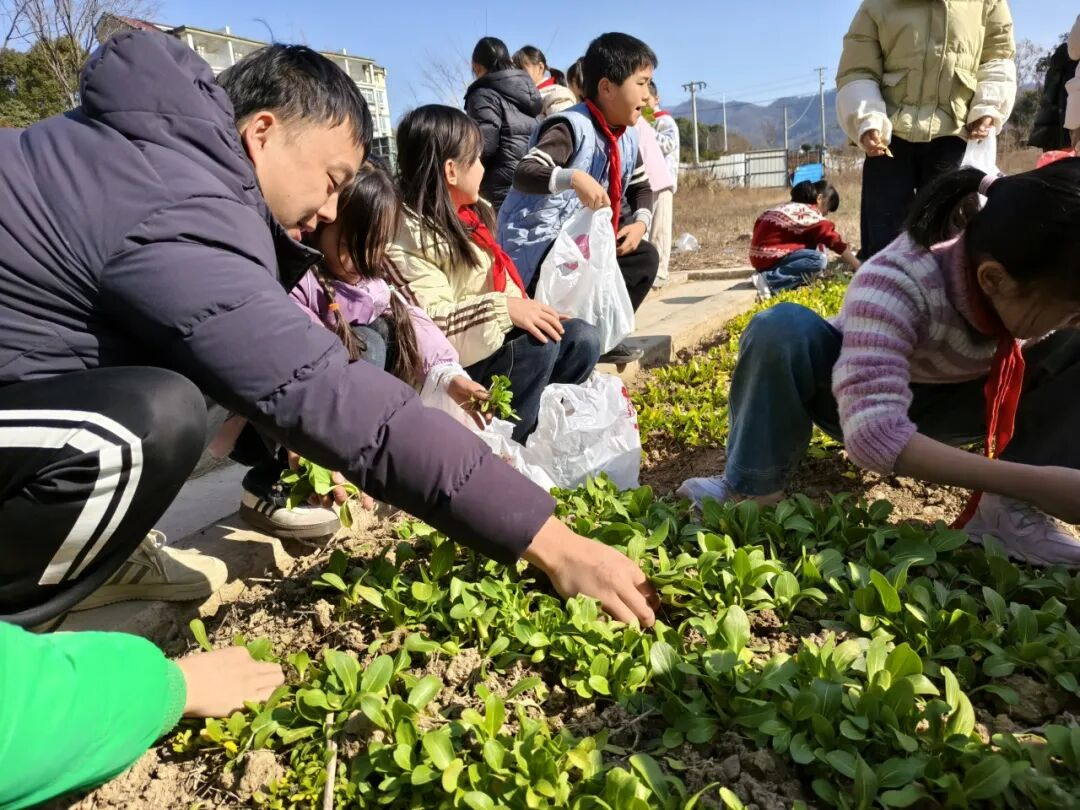 1月23日上午,东至县敬慈小学关工委组织四年级少先队员走进学校劳动实践基地——耕慈园,开展蔬菜采摘实践活动。