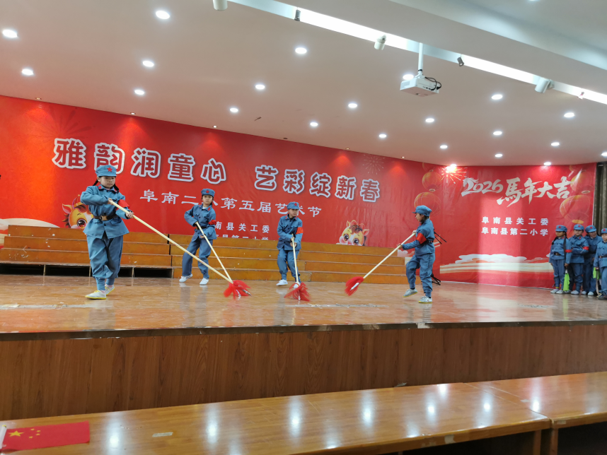 岁首添喜韵,艺彩映童真。1月28日下午,安徽省阜阳市阜南县关工委与阜南二小联合举办“雅韵润童心 艺彩绽新春”迎春联欢会暨第五届艺术节闭幕晚会。县关工委领导与全校师生欢聚一堂,共赏这场融合歌声、舞蹈、剪纸、书画等多元形式的童趣艺术盛宴,在雅韵熏陶中喜迎新春。