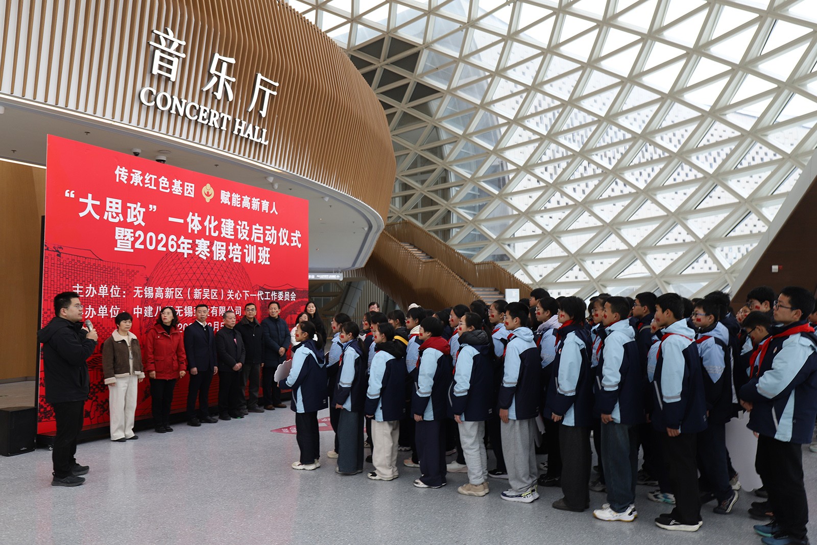 2月5日,江苏省无锡高新区(新吴区)关工委在无锡交响音乐厅举行“传承红色基因 赋能高新育人”——“大思政”一体化建设启动仪式暨2026年寒假培训班。