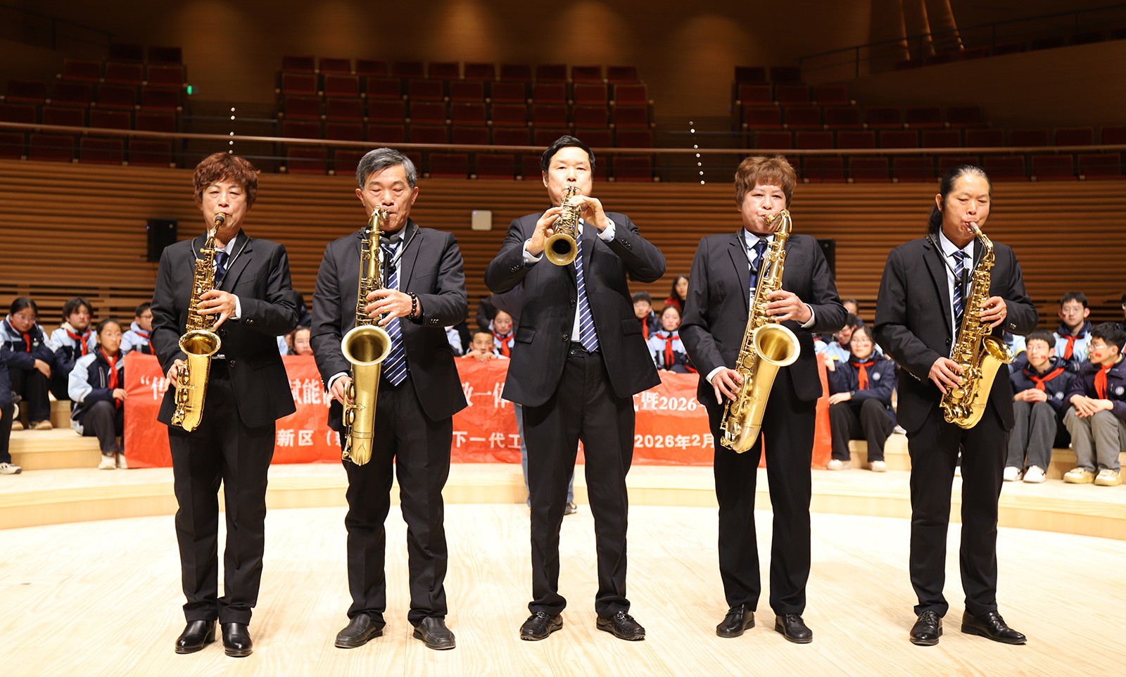 “关爱明天”乐团奏响育人强音。长期以来,区关工委高度重视青少年美育与思想道德教育的有机结合。全区6支“关爱明天”乐团常年活跃于城乡社区(村)、学校、企业,每年演出百余场,覆盖青少年观众超过4000人次,成为传播正能量、涵养爱国情怀的生动载体。此次活动特别邀请“关爱明天”萨克斯乐团现场演奏《最美的歌唱给妈妈》,以音乐传递关爱,展现老同志对下一代的深情寄托。