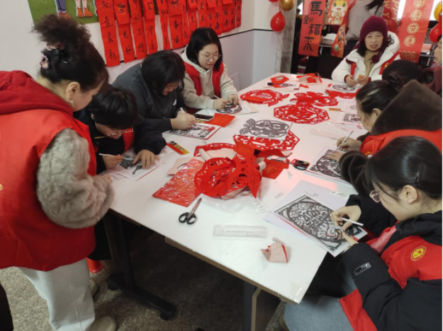 剪纸区同样热闹非凡。孩子们专注地跟着老师折叠红纸、勾勒线条、精巧剪裁,指尖翻飞间,一个个寓意吉祥的“福”字、灵动可爱的生肖马等剪纸作品接连诞生。有的孩子发挥创意,在传统样式中融入自己的奇思妙想,让剪纸作品既有古韵又添童趣。当看到自己亲手完成的作品时,孩子们脸上洋溢着自豪与喜悦,纷纷互相展示、分享创作心得。
