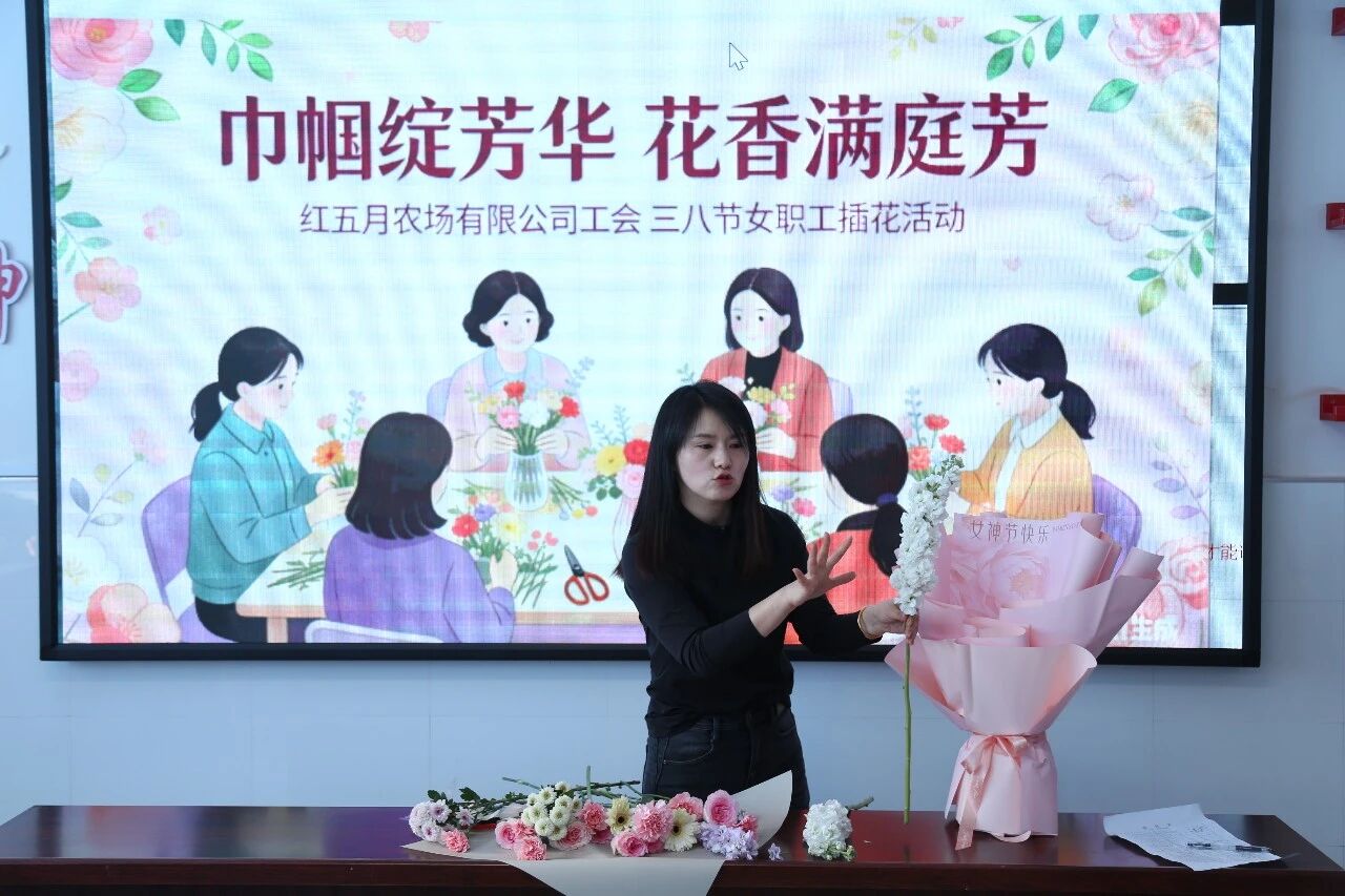 为庆祝“三八”国际劳动妇女节,丰富女职工精神文化生活,展现新时代女性昂扬向上的精神风貌。3月4日,红五月农场工会、关工委联合举办“巾帼绽芳华 花香满庭芳”艺术插花活动,来自农场机关各部门、各基层单位的青年女职工们欢聚一堂,在花草芬芳与创意创作中,度过了一段温馨雅致、充满乐趣的美好时光。