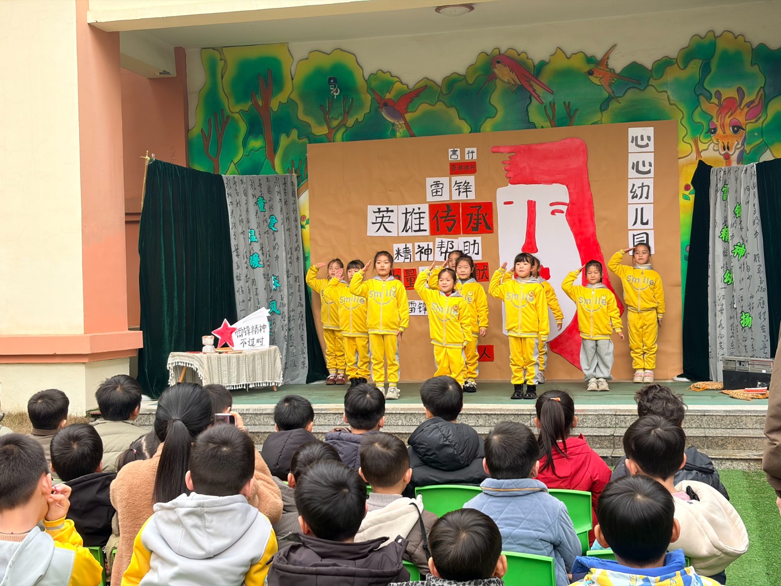 活动在《学习雷锋好榜样》歌声中拉开序幕,师生共同演绎雷锋话剧,分享雷锋故事。社区文明实践员与孩子们亲切互动,引导大家从整理玩具、帮助同伴、爱护环境等小事做起,将雷锋精神转化为日常行动。