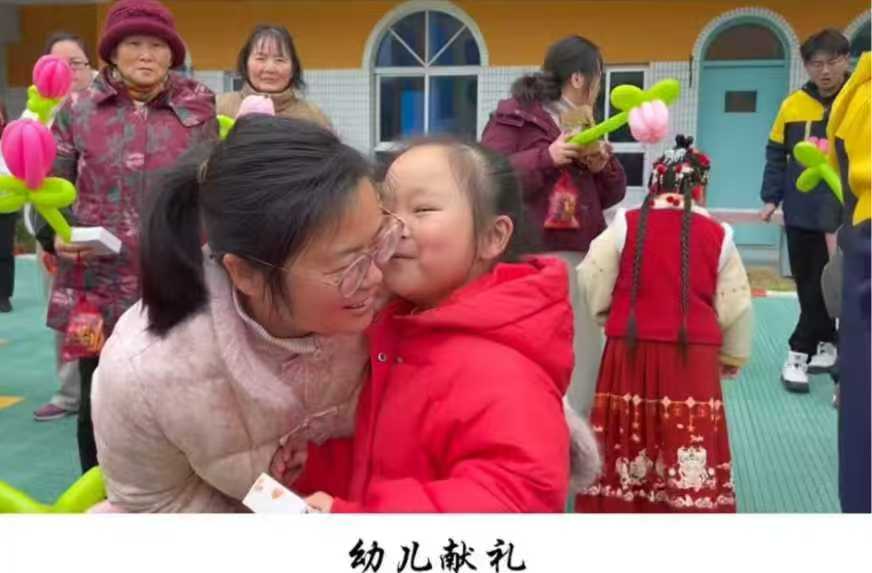 孩子们精心挑选心仪的礼物送给妈妈,并给妈妈甜蜜的吻。园长发表温馨致辞,小朋友们依次登台表演:手势舞《妈妈我爱你》、大班节目《金蛇狂舞》,还有妈妈代表现场发言。整个幼儿园暖意融融,爱意满满。