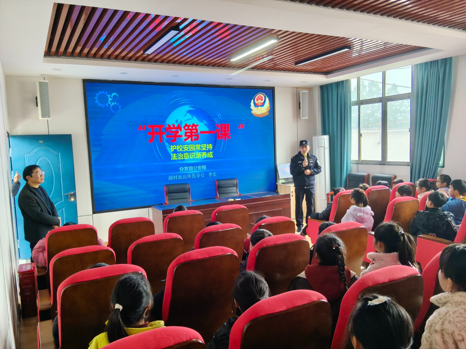 3月6日,江西省新余市分宜县洞村乡关工委联合派出所在洞村中心学校开展“开学第一课”安全教育活动。