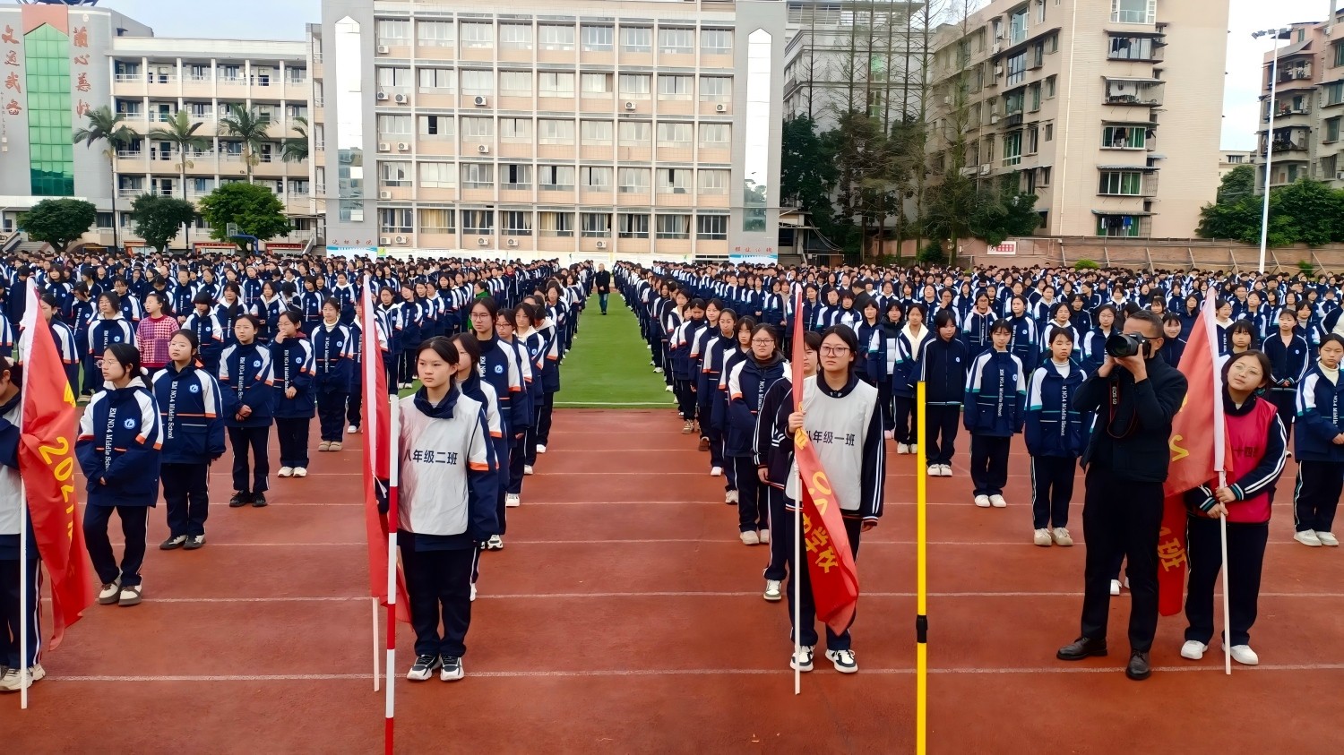 上午9时30分,峨眉山市第二中学高中部全校3000多名师生齐聚在操场上参加聘任仪式活动。