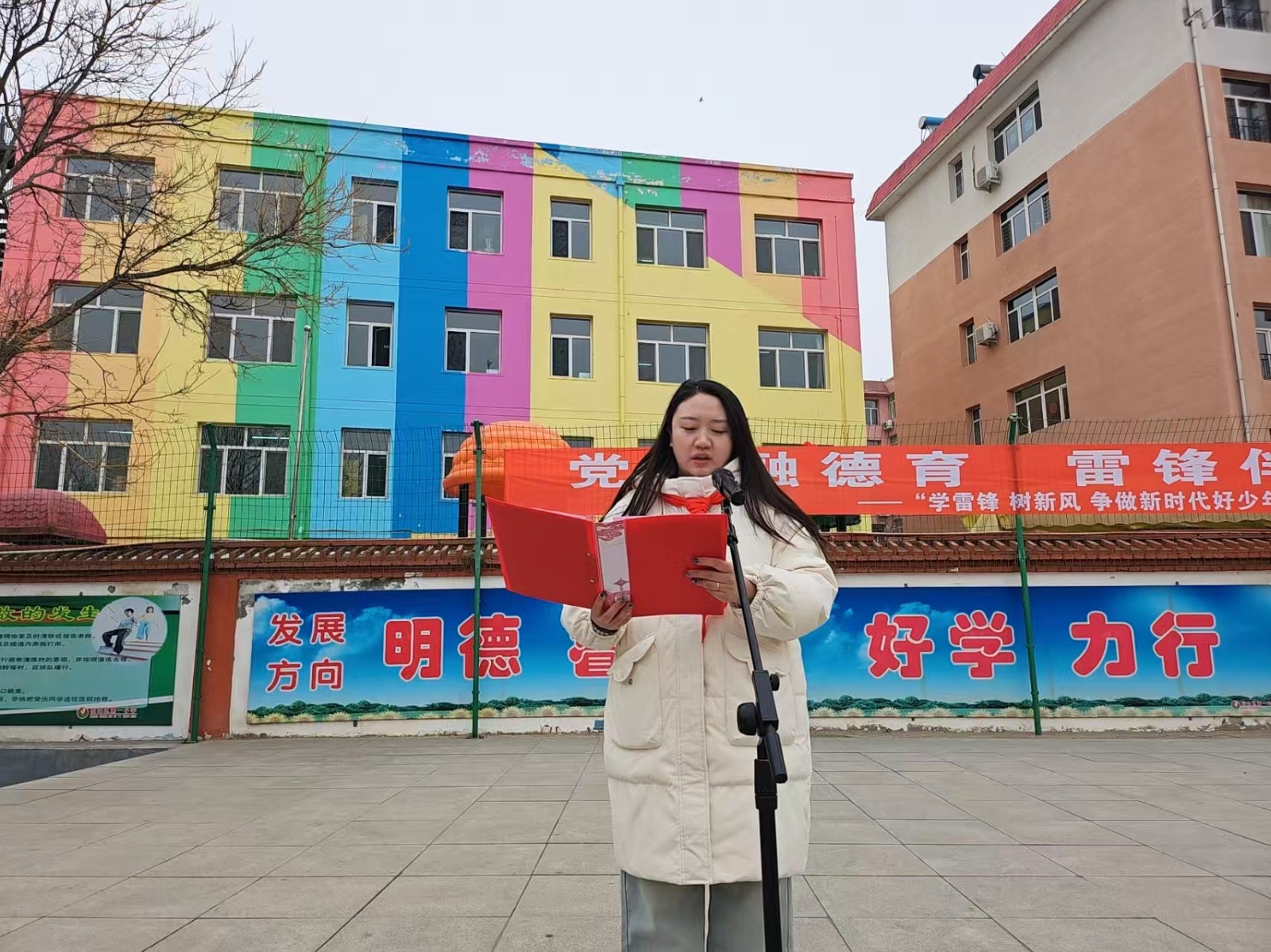 启动仪式在庄严的国歌声中拉开序幕,全体师生肃立致敬,校园内洋溢着崇德向善的浓厚氛围。仪式上,政教处副主任宣读了活动月实施方案,明确了活动安排与具体要求,为活动开展划定路径。学生代表发言,表达了全体同学学习雷锋精神、争做文明少年的决心。学校党支部副书记作总结讲话,勉励全体师生将雷锋精神融入日常、落到实处,以实际行动传承美德。