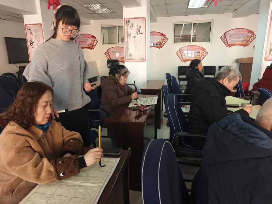 讲座中,刘娟老师以“书法养心、中医养生”为切入点,系统阐释中国传统书法与中医文化的内在关联。刘老师结合历史脉络,梳理书法艺术从甲骨文、金文到篆、隶、楷、行、草的发展历程,讲述历代书法名家与中医养生的文化故事,让居民在艺术史中读懂文化根脉。在互动讲解环节,刘老师将书法练习与中医养生技巧相结合,分享执笔姿势、呼吸调节、心境涵养等实用方法,引导大家在挥毫泼墨中舒缓压力、调和气血、养护身心。她强调,书写过程既是艺术创作,也是身心调养,长期坚持可达到凝神静气、强身健体的效果。