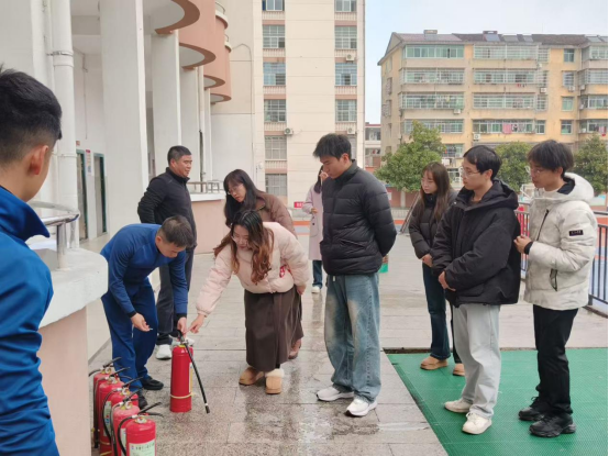 最让老师们跃跃欲试的,要数实操培训环节。在消防人员的指导下,大家轮番上阵,手握灭火器,严格按照“提、拔、握、压”四字口诀,对准火源根部果断喷射。虽然只是演练,但那股认真劲儿,俨然一副“火情来了我能上”的架势。