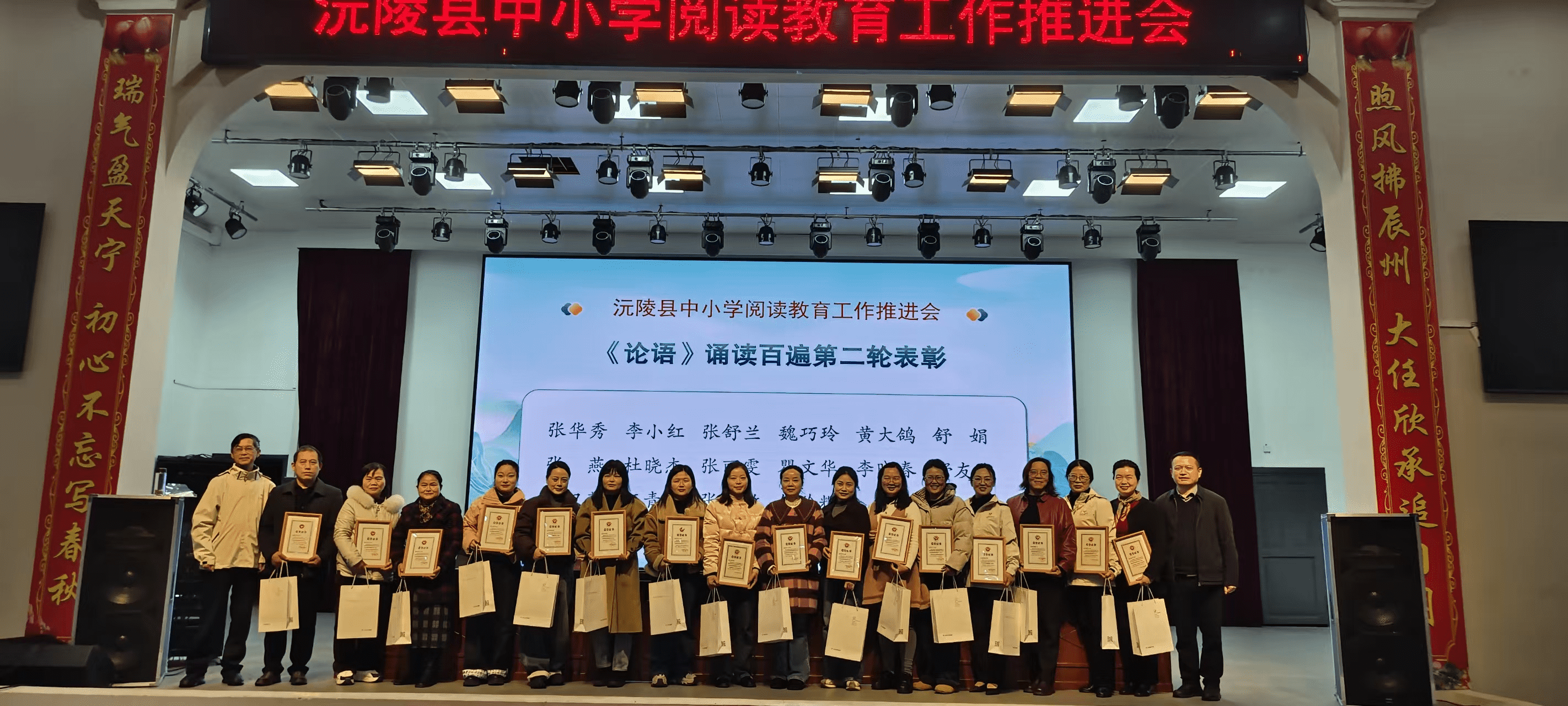 现场,沅梦教育基金会还公布表彰名单,对44名坚持诵读《论语》100遍的教师、志愿者分批次颁奖,以榜样力量激励更多教育工作者投身经典传承事业,彰显了沅陵对深耕阅读教育、坚守文化初心的肯定与鼓励。