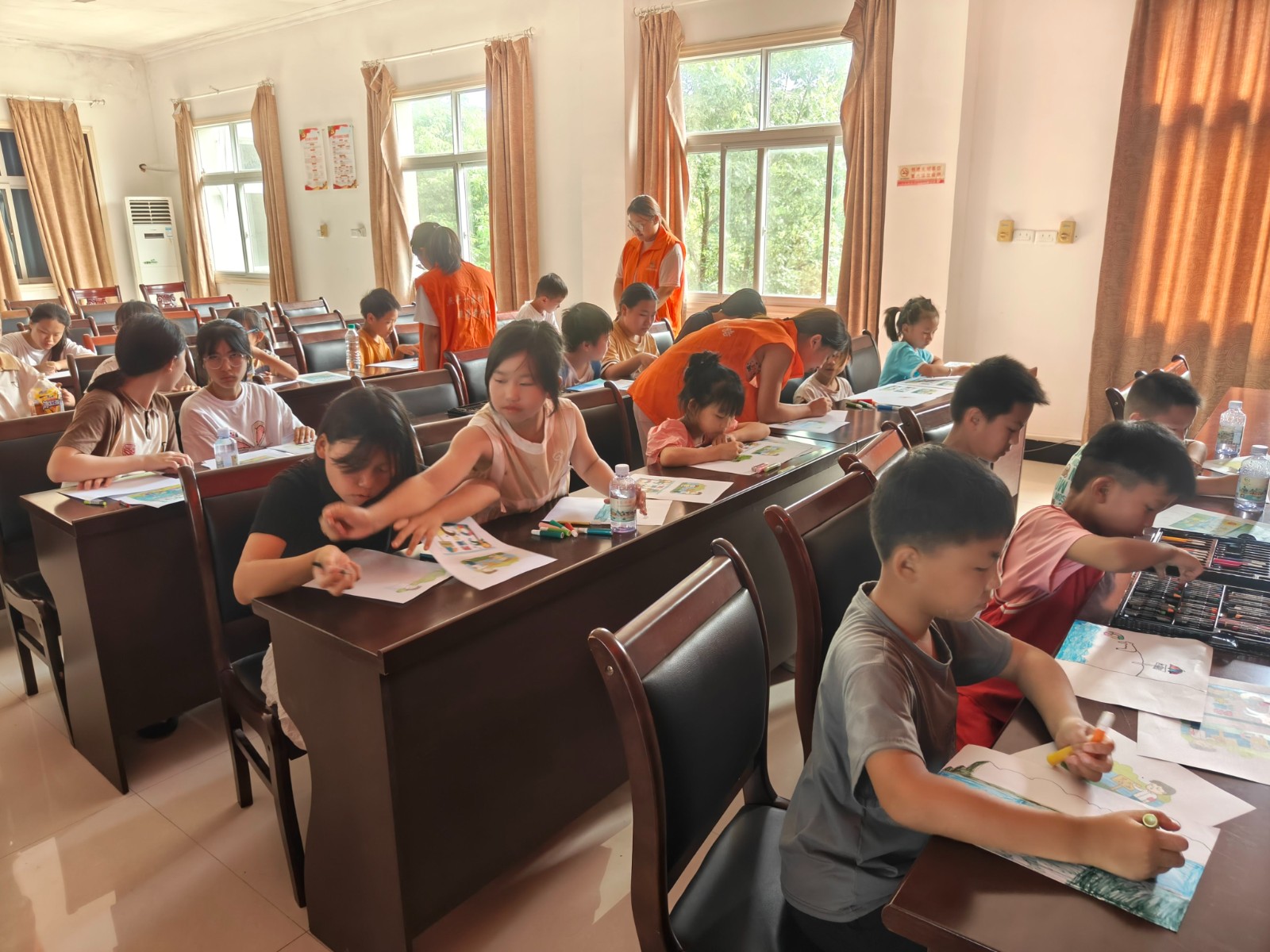 江西省新余市分宜县操场乡桃源街社区关工委开设“七彩夏日乐享童年”儿童绘画课堂