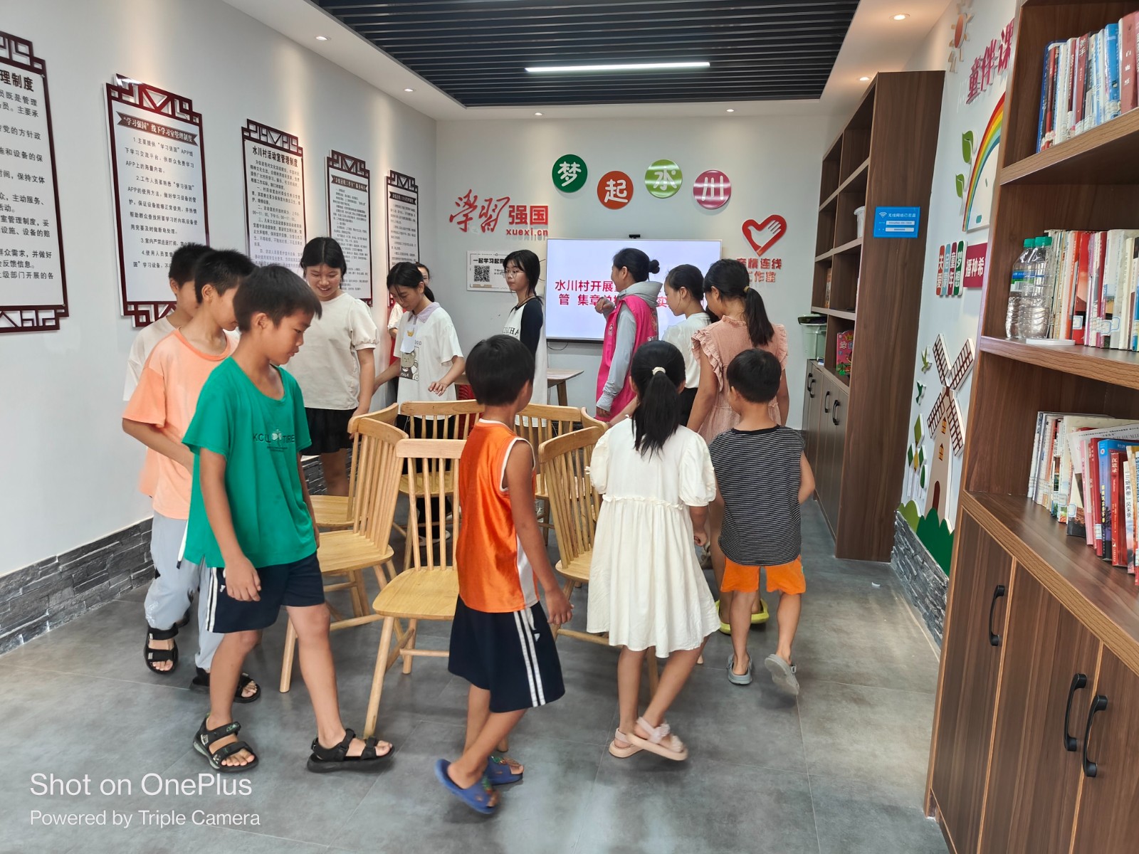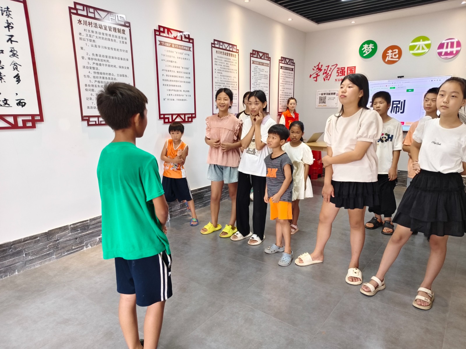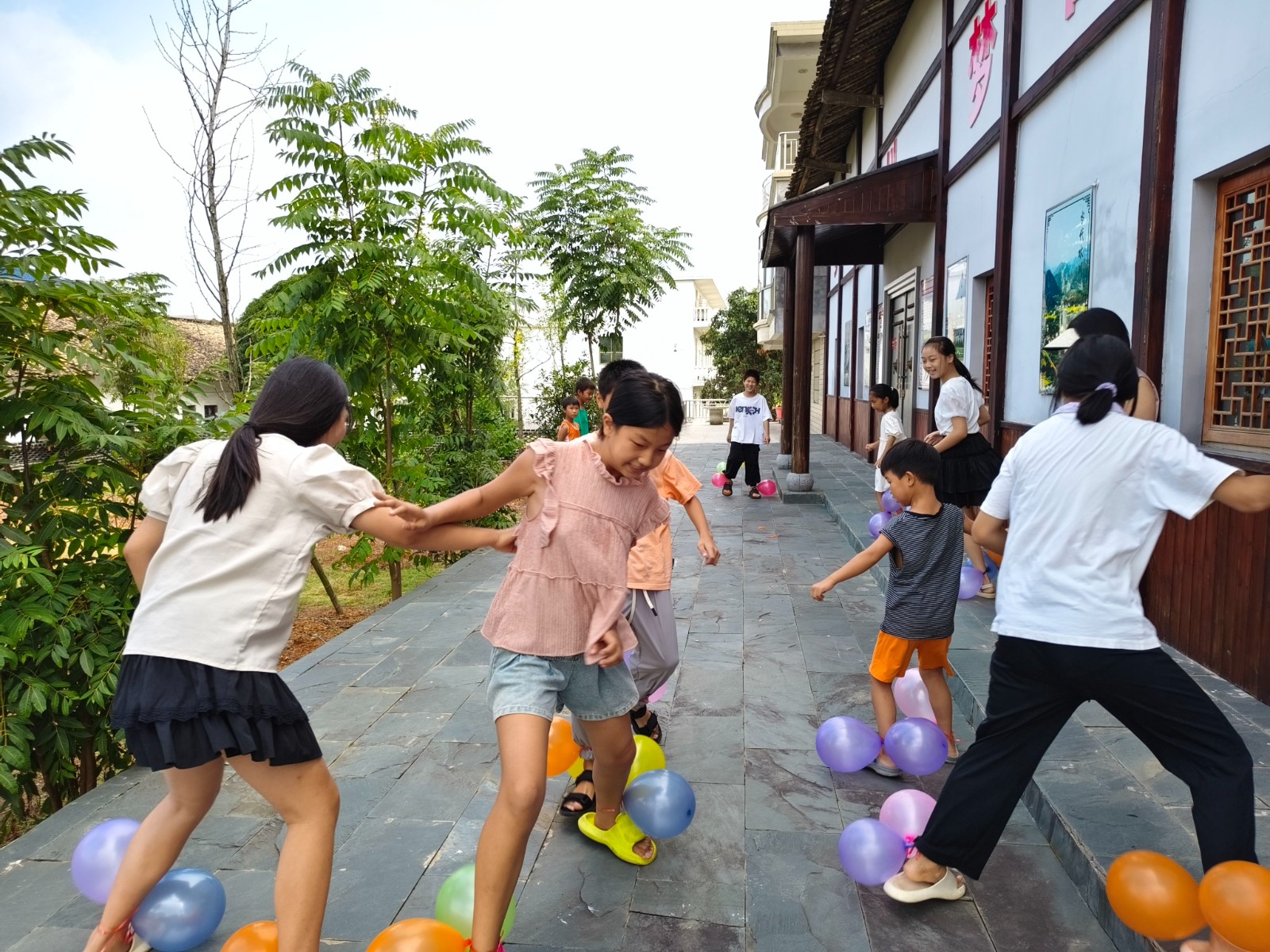 8月13日,江西省新余市分宜县湖泽镇水川村关工委开展“暑期托管集章兑换”活动,组织青少年以游戏娱乐为主,进行欢乐踩气球、你来比划我来猜、萝卜蹲、抢橙子等游戏,锻炼儿童们的肢体、语言表达及反应能力,让青少年劳逸结合开心过好暑假。