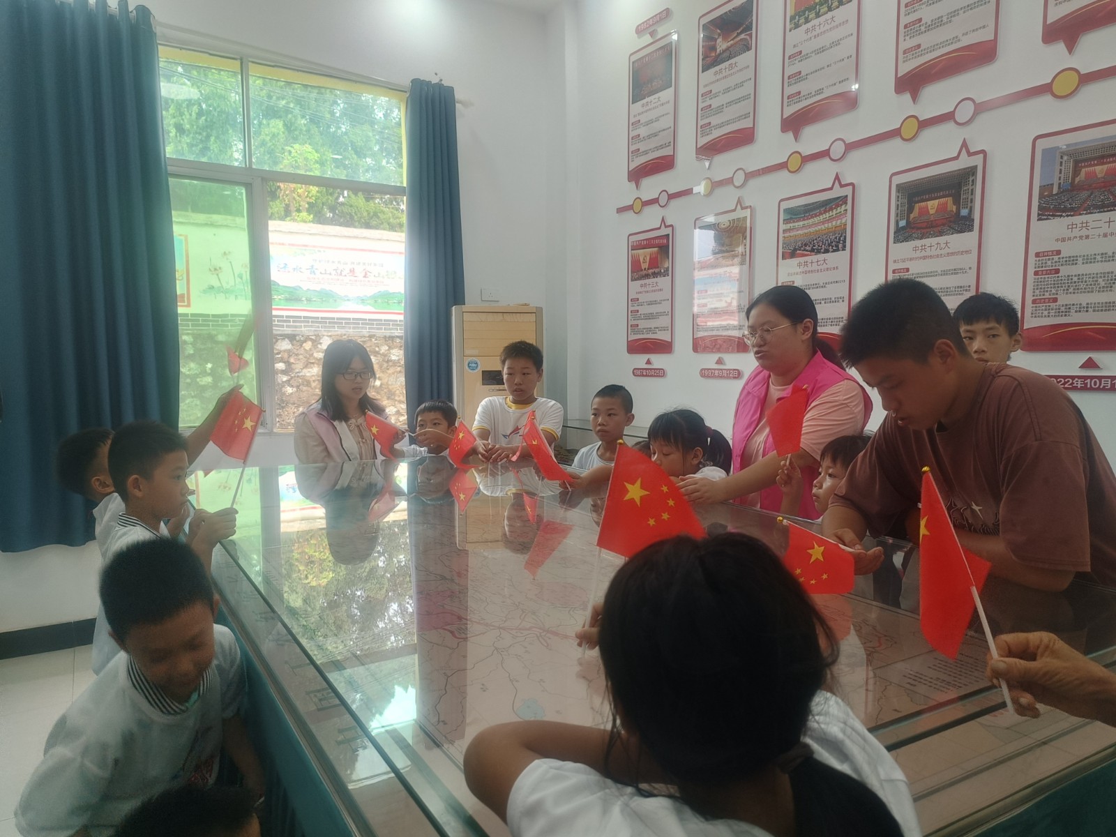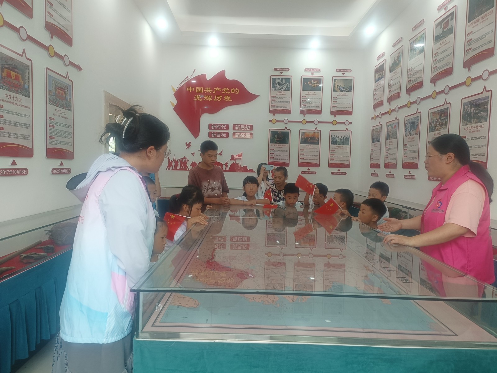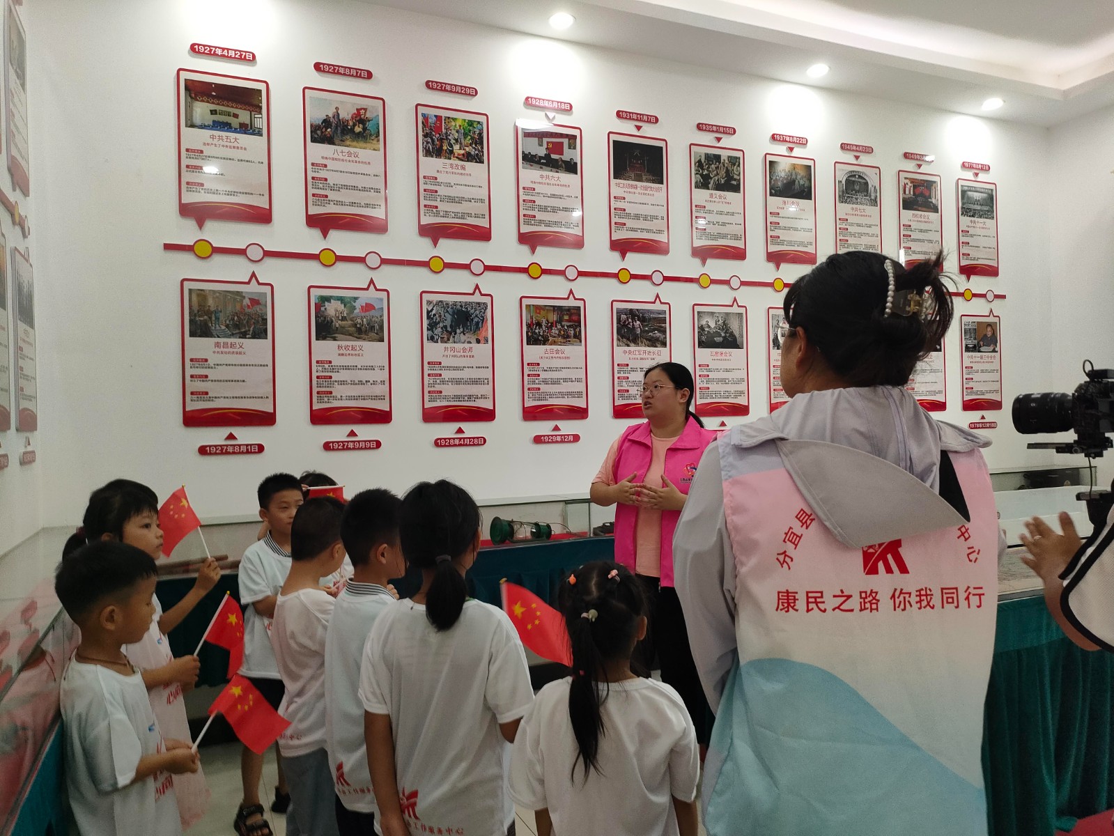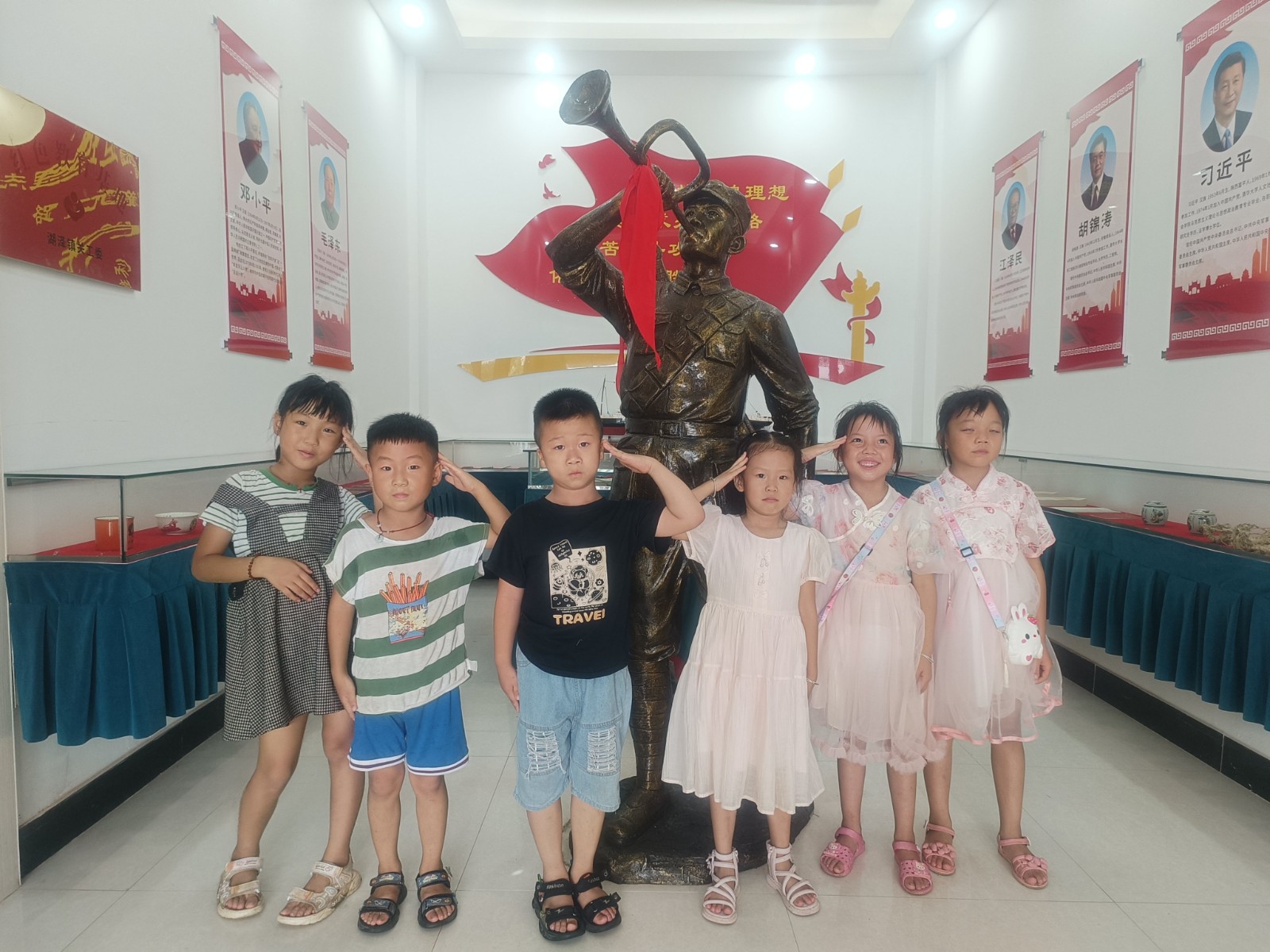 8月15日,江西省新余市分宜县湖泽镇闹州村关工委开展“童筑爱国梦,心向祖国红”主题教育。大学选调生陈夏菲带领辖区内青少年,来到湖泽镇关工委红色教育基地、闹州村村史馆,参观井冈山的斗争史、红军长征史厅、党史发展厅、村史科普厅,向青少年讲述党史、国史、家乡史,激发孩子们的爱国、爱家乡的情怀。