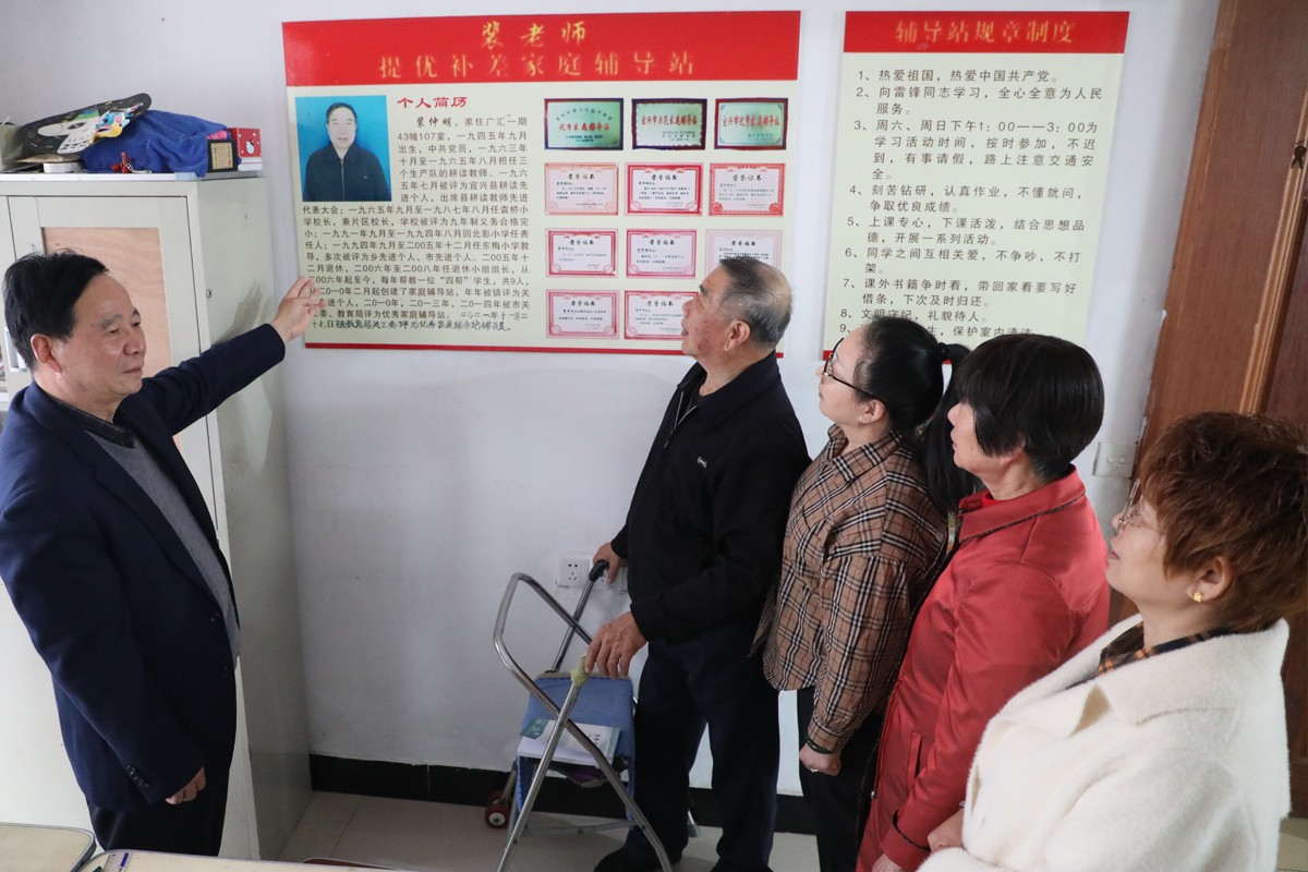 裴仲明老师退休后,心怀感恩,决心回报社会。他先是从事“四帮一”工作十年,帮教十位学生取得进步。2010 年,他创办家庭辅导站,解决了小区孩子周末无所事事、家长担忧的问题。消息传出,家长们纷纷送孩子前来。裴老师认真负责,不仅辅导文化知识,还关注孩子的思想状况。对学困生和单亲家庭的孩子,更是给予特别的耐心与关爱。在他的悉心辅导下,多位学生取得优异成绩。然而,这一路并非一帆风顺。2016年6月,他不慎摔跤,在市人民医院置换股骨。2018年,身体严重缺钾多次晕倒,腿再次摔坏,只能卧床静养。但他心急辅导站的未来,稍有好转便坐在轮椅上继续辅导。