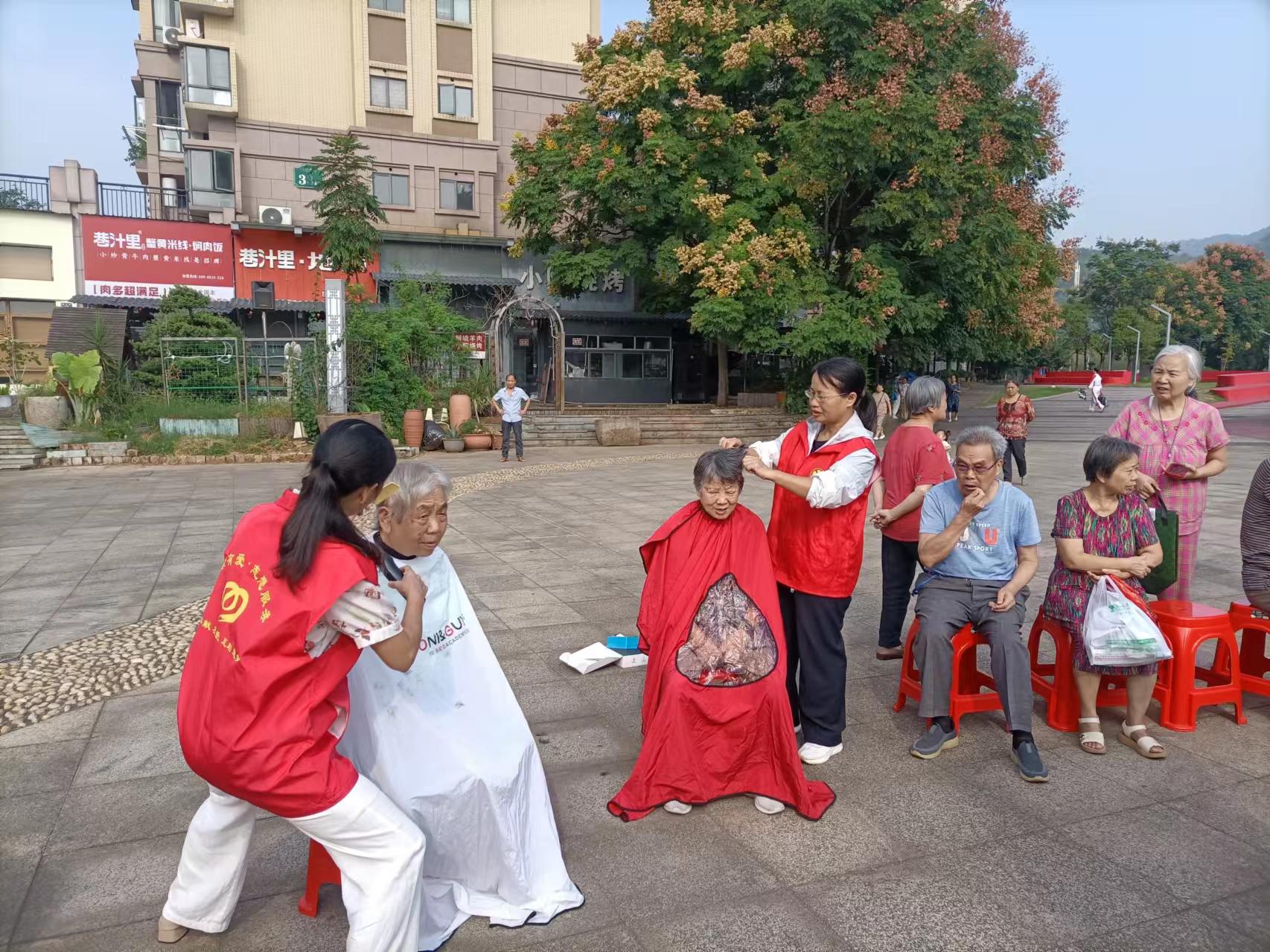 活动节目形式多样,既有柔美的扇子舞《水墨中国》,也有尽显国粹风采的京剧《红梅赞》、《脸谱》;既有小朋友们欢快的舞蹈《中国加油》,也有全体参与人员带来的经典大合唱《我和我的祖国》。节目的另一边,义剪、磨刀便民服务和普法宣传摊位也在有序进行着,让大家在享受文艺演出的同时,也能享受到实实在在的暖心服务。我们也希望用这样的方式,让社区的每一个人都能感受到祖国的警荣昌盛,共同为祖国的明天加油鼓劲。