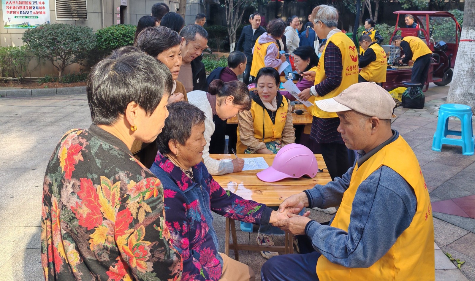 活动现场为居民提供理发、量血压、磨刀、缝补、中医保健、配钥匙、小家电维修等系列便民服务,吸引了众多居民前来。居民根据自己的需求选择相应的服务,志愿者们忙碌而有序地工作着。他们耐心地帮居民量血压,解答疑问,帮居民修剪头发,检查维修家电,修磨刀具,精湛技艺和热情服务赢得了居民们的一致好评。