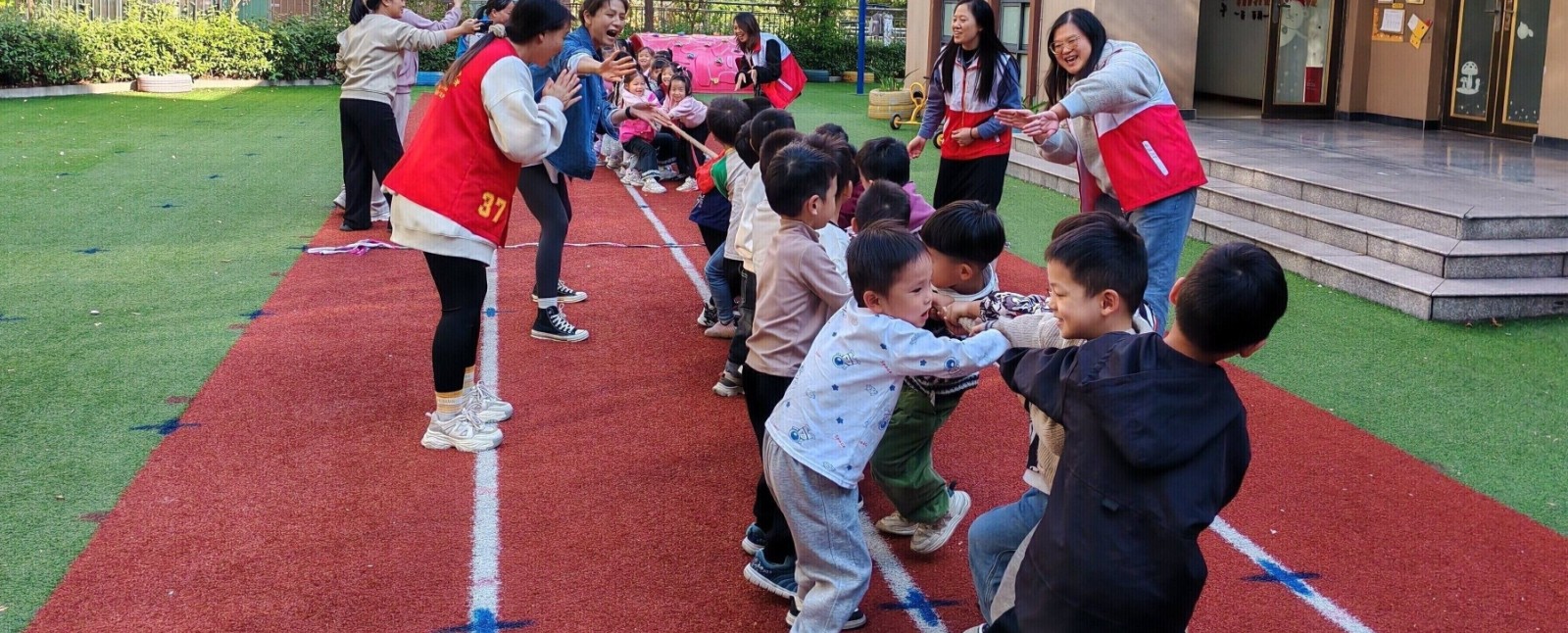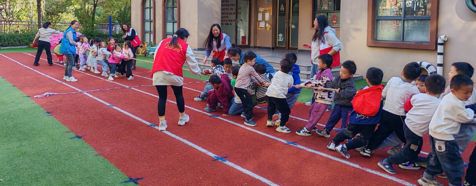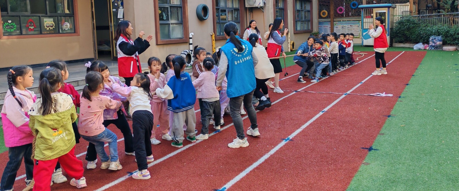 为进一步培养辖区内儿童团结协作的精神和坚韧不拔的毅力,锻炼儿童身体,丰富儿童的户外活动。11月7日下午,江西省新余市渝水区城北街道平安路社区关工委联合渝水区红十字会走进爱迪乐现代幼儿园开展“童趣拔河 乐动未来”文明实践活动。