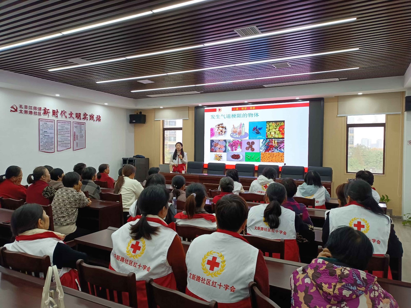 培训课堂上,来自红十字会的专业讲师为现场居民详细讲解了气道异物梗阻的处置和心肺复苏的操作,让每位参加者都能亲身体验并掌握这些关键时刻可能挽救生命的技能。