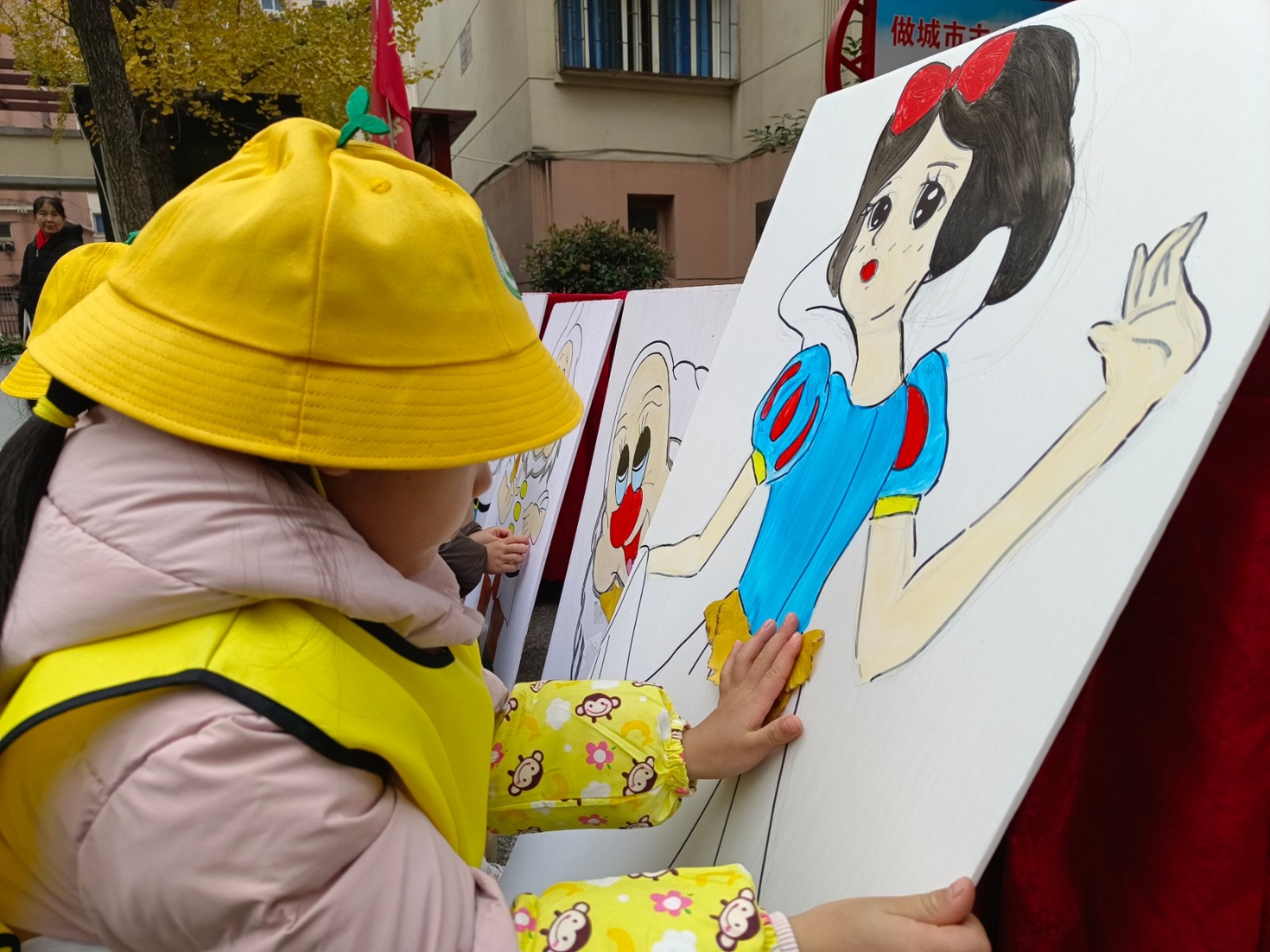 活动现场,大家热情高涨,纷纷弯下腰捡起飘落的银杏树叶。这些金黄的树叶在孩子们眼中犹如大自然馈赠的珍宝,成为了他们创作的独特素材。在老师和志愿者的指导下,小朋友们充分发挥想象力,将树叶与绘画巧妙结合,制作出一幅幅充满童趣的贴画作品。这些作品不仅展现了孩子们对美的独特感知,更传递出他们对环保理念的初步理解和践行。