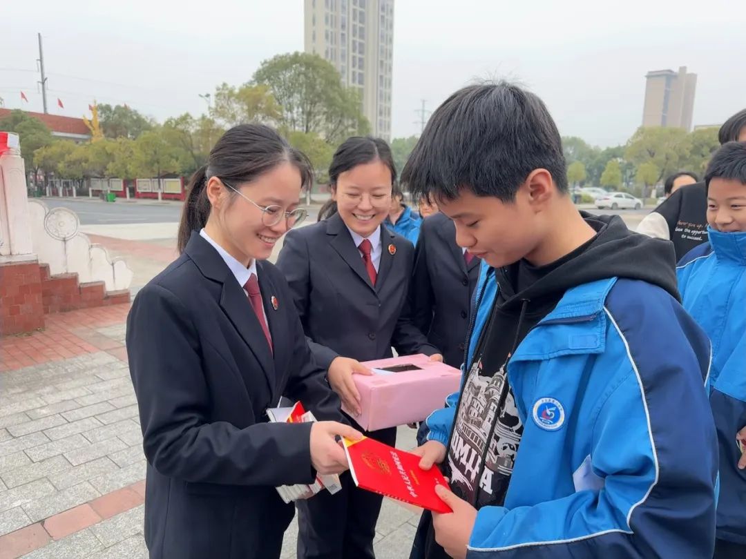 为打破青少年对法律知识枯燥、政策条例难懂的刻板印象,本次活动采用“游戏挑战+法治学习”的形式,设置了“丢下烦恼、一击即中”丢沙包游戏,将法治常识与趣味游戏相结合,让青少年在游戏中学习法律知识,加深对法治的认识。活动现场,参与者先领取1个沙包参与游戏,投中目标以上分数即视为挑战成功。随后,挑战成功的参与者即可进入法治答题环节,随机抽取多种形式的宪法知识问答题,答对便可获得宪法小册子、笔记本等奖品。同时,在游戏过程中,法治班主任们还为现场学生们讲解检察职能和法律法规。