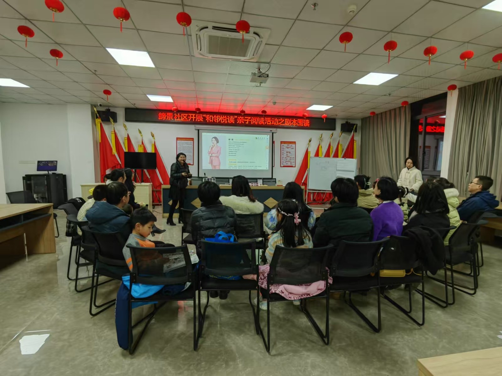 为增进亲子之间的关系,培养孩子们的阅读兴趣和习惯,提高家庭的文化氛围,12月21日晚,江西省新余市渝水区城北街道缔景社区关工委联合如一书屋开展“和邻悦读”亲子阅读活动之剧本围读。活动开始何老师引导家长和孩子们深入解读《牧羊少年的奇幻之旅》剧本,通过角色扮演与情感交流,体会剧中人物的内心世界与成长历程。孩子们和家长在围读过程中,不仅加深了对文学作品的理解,同时在何老师的指导下,学会了如何倾听、如何表达,以及如何以更加开放的心态去理解他人。活动最后何老师通过动物看自己的方式来了解到一个平时看不到的自己。