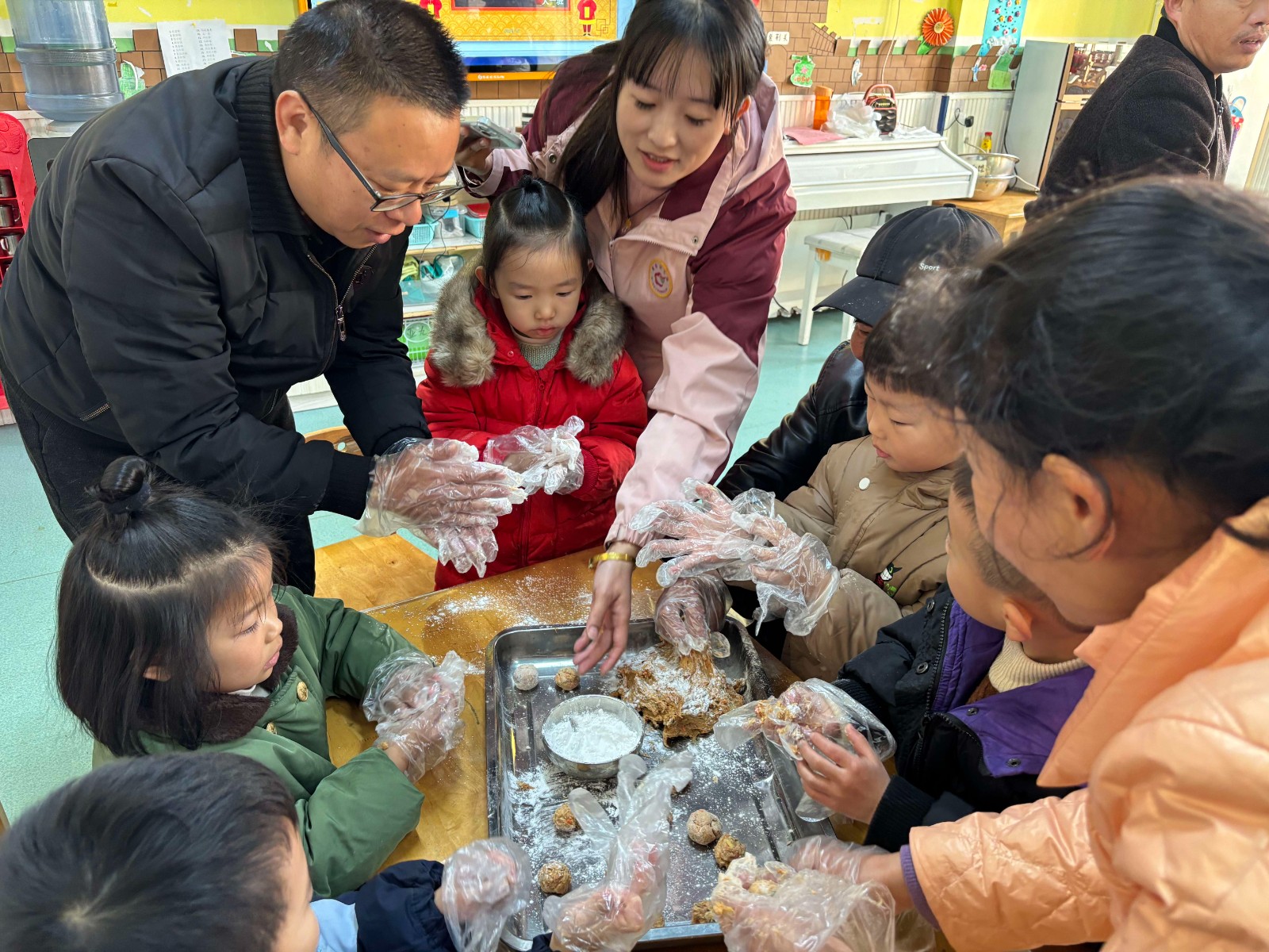12月28日,江西省新余市分宜县钤西街道保健巷社区关工委联合童心幼儿园开展手工制作肉丸课外实践活动,丰富社区小朋友们的课余生活,传承传统美食文化。