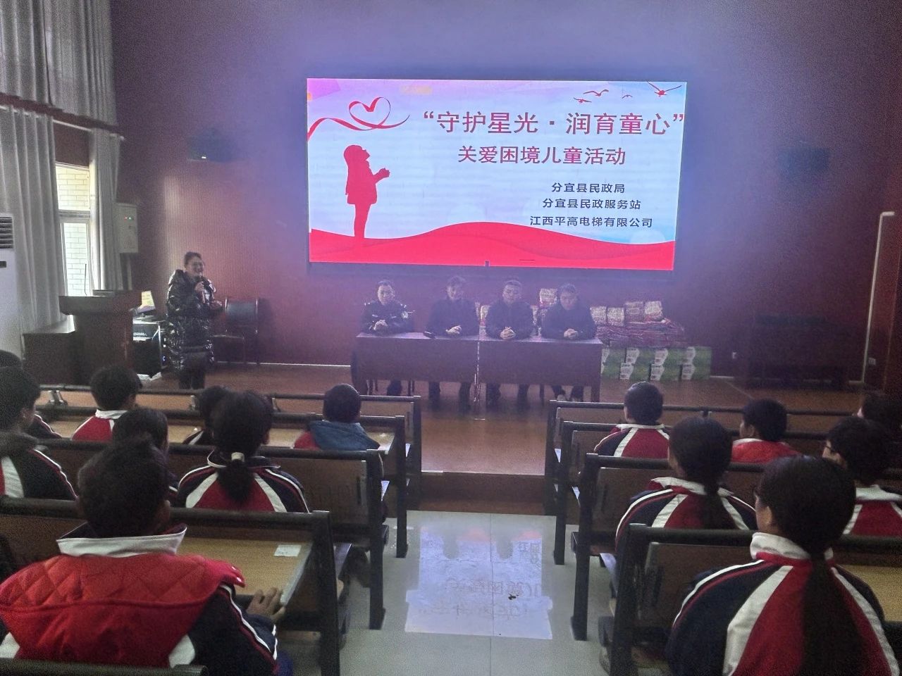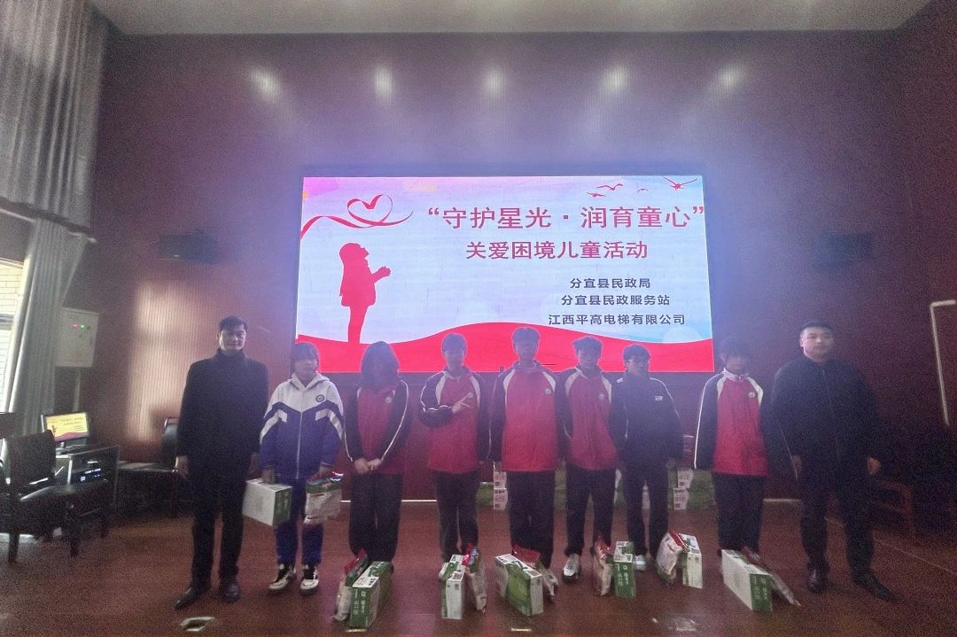 1月2日,江西省新余市分宜五中关工委开展“守护童心·润育童心”关爱困境学生活动,赞助商江西平高电梯有限公司为40名困境学生送上慰问品。