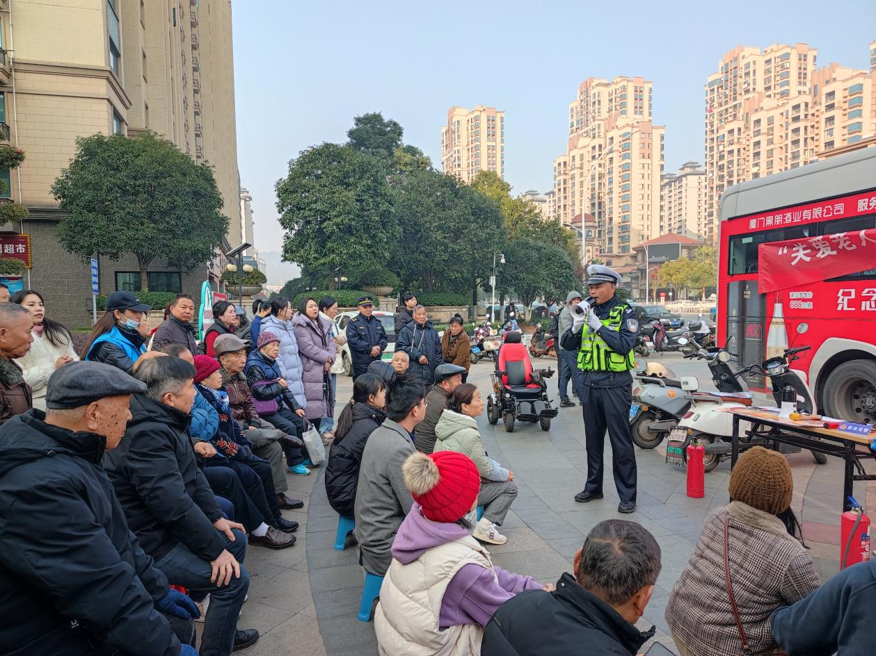 联合交警开展了针对老人的交通安全宣讲,根据老年人出行的习惯,向大家耐心地讲解了过马路、乘坐公共交通工具、骑行非机动车以及驾驶私家车时的注意事项,着重强调了遵守交通规则、佩戴安全头盔、使用安全带的重要性。还向居民说明了大型车辆的盲区部位,及车辆盲区存在的危险性,以及如何防范车辆盲区保护自身安全。