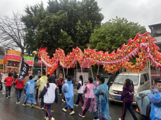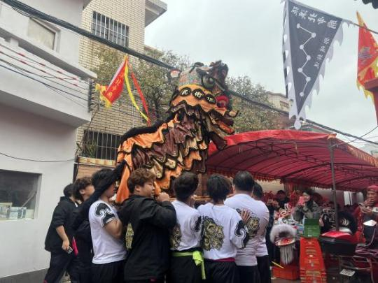 随着激昂的鼓点响起,灵动的醒狮队矫健地穿梭在村内道路之中,它们时而跳起,凌空飞跃;时而摇头摆尾,趣味十足,动作神态惟妙惟肖,向邻里街坊展示青少年昂扬向上的精神面貌和参与非遗传承的责任担当。